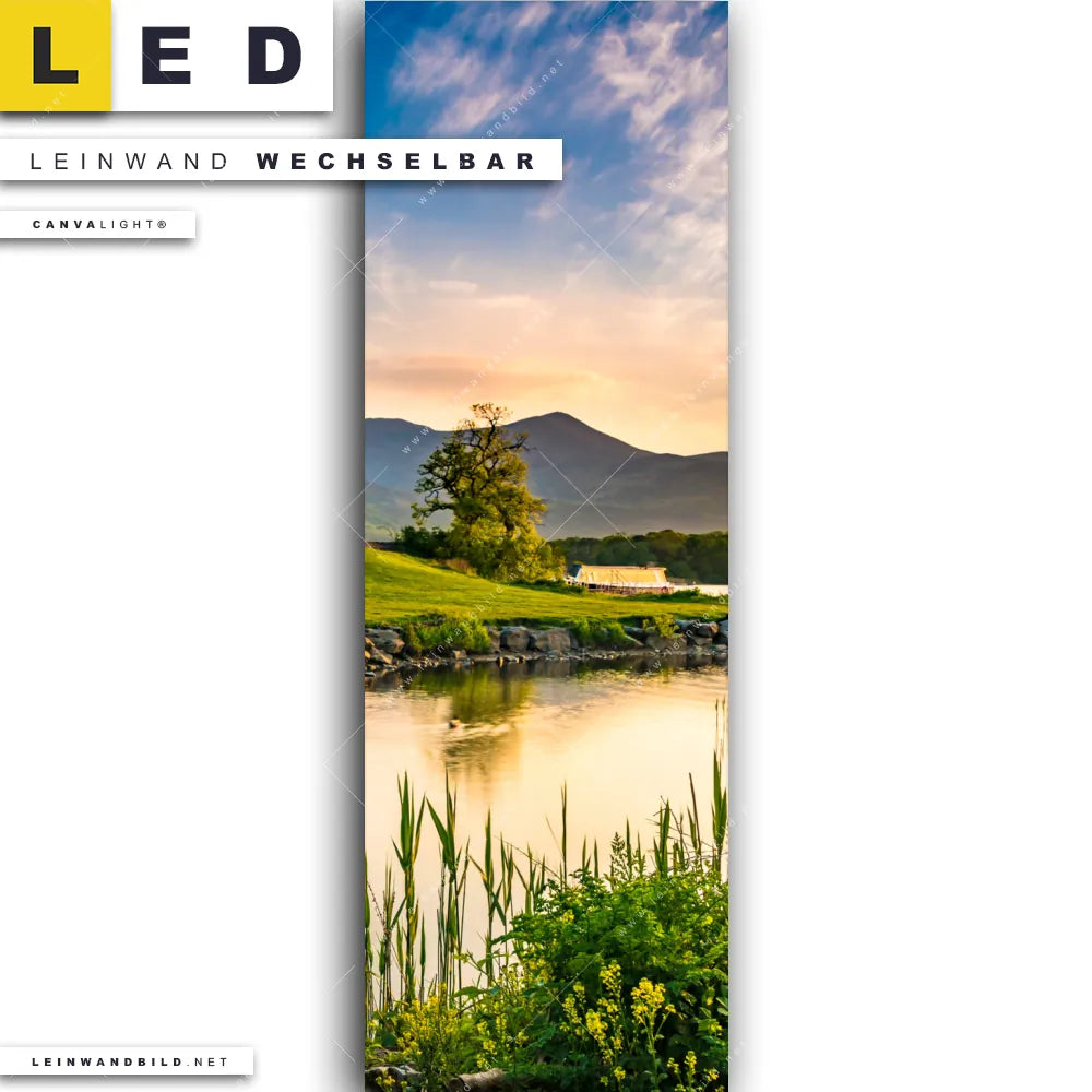 Du bist auf der Suche nach einem Architektur - Gebäude, Landschaften LED Leinwandbild im Schmalen Format? Begriffe wie Schottland, Burg, Festung, Landschaft, See, Fluss haben Dich auf der Suche nach Deinem neuen XXL LED Wandbild mit wechselbarer Leinwand inspiriert? Farben wie Blau, Grün, Grau , Gelb dürfen auf Deinem neuen Leinwand-LED-Bild im Panorama-Hochformat nicht fehlen und Leuchtbilder im Natürlich - Realistisch Stil passen perfekt zu Deinem Einrichtungsstil?