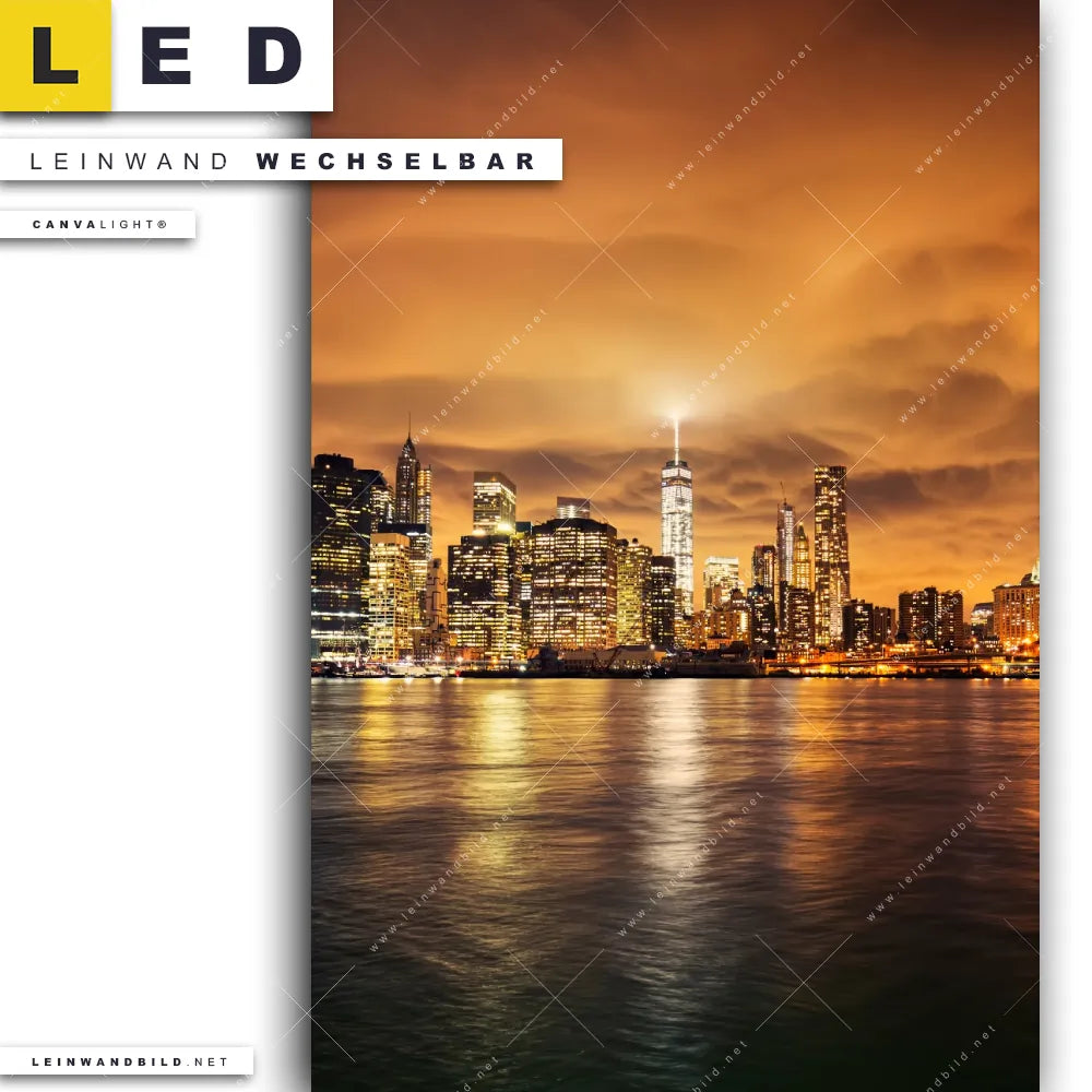 LED Leinwandbild Canvalight® TEX | Manhatten bei Sonnenuntergang | Hochformat