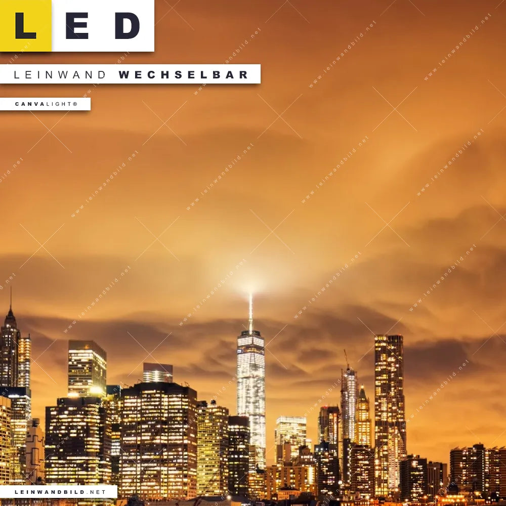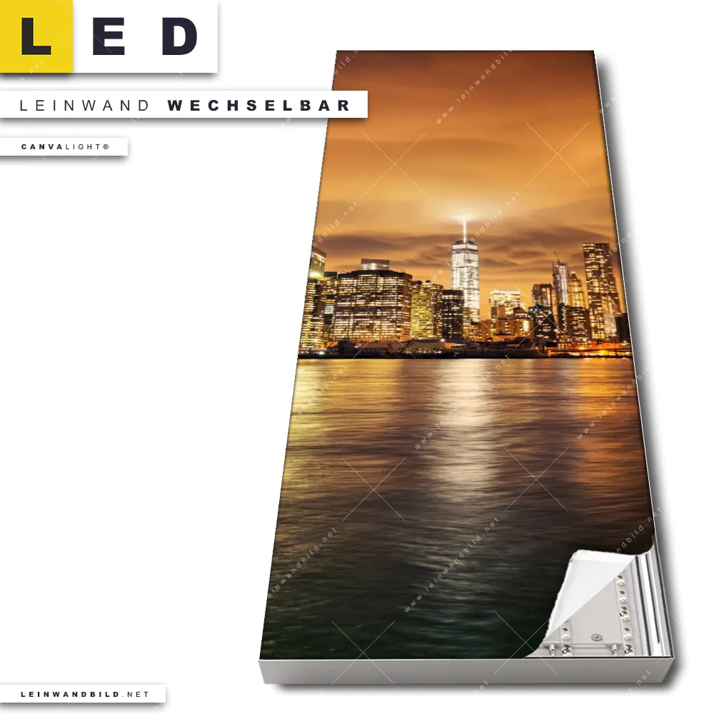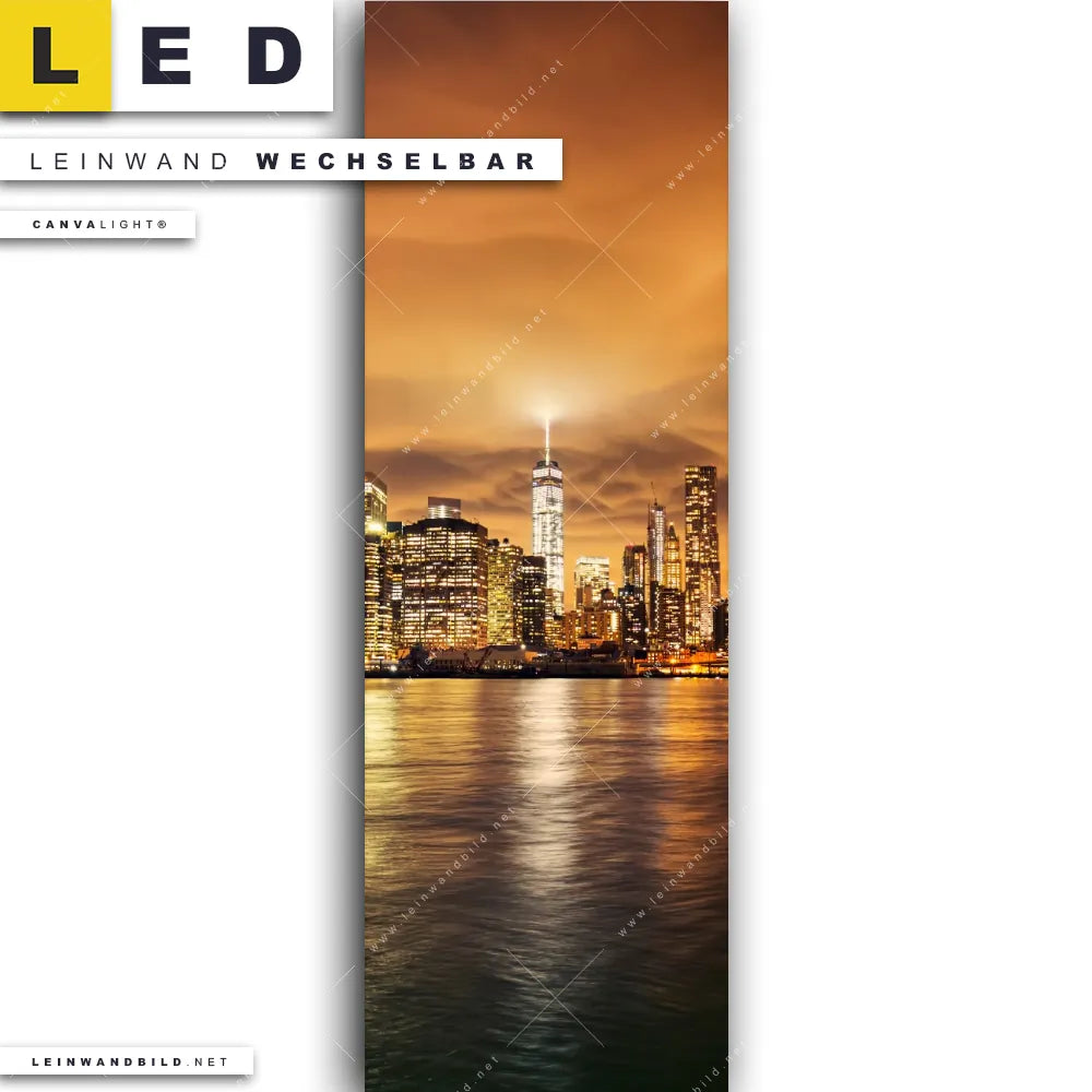 LED Leinwandbild Canvalight® TEX | Manhatten bei Sonnenuntergang | Schmal