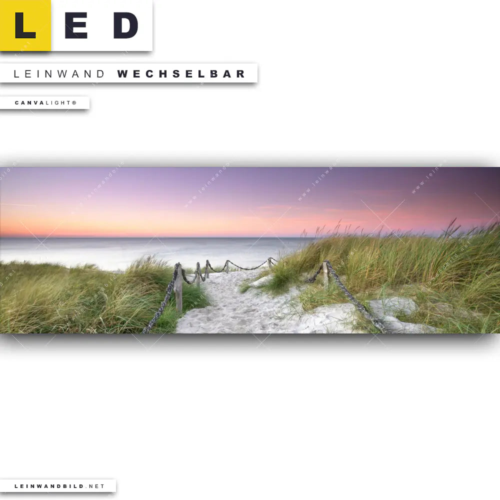 LED Leinwandbild Canvalight® TEX | Strandweg im Sonnenuntergang | Panorama