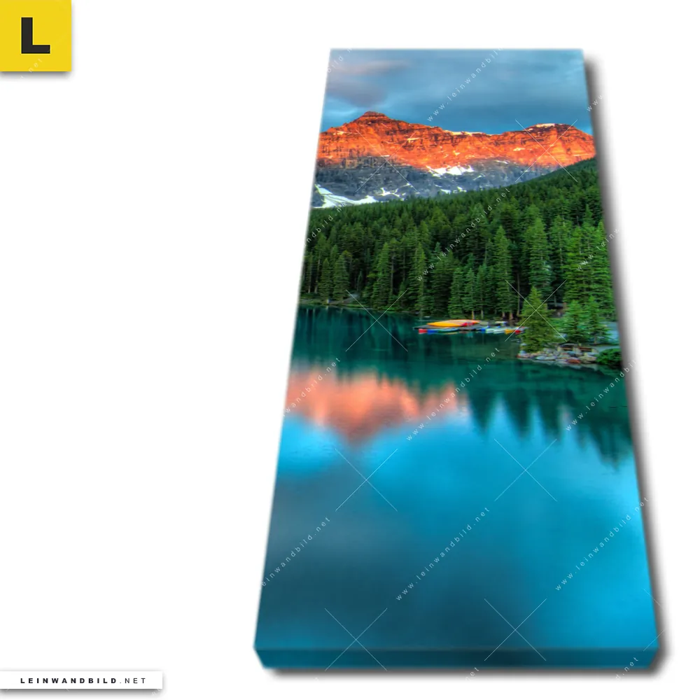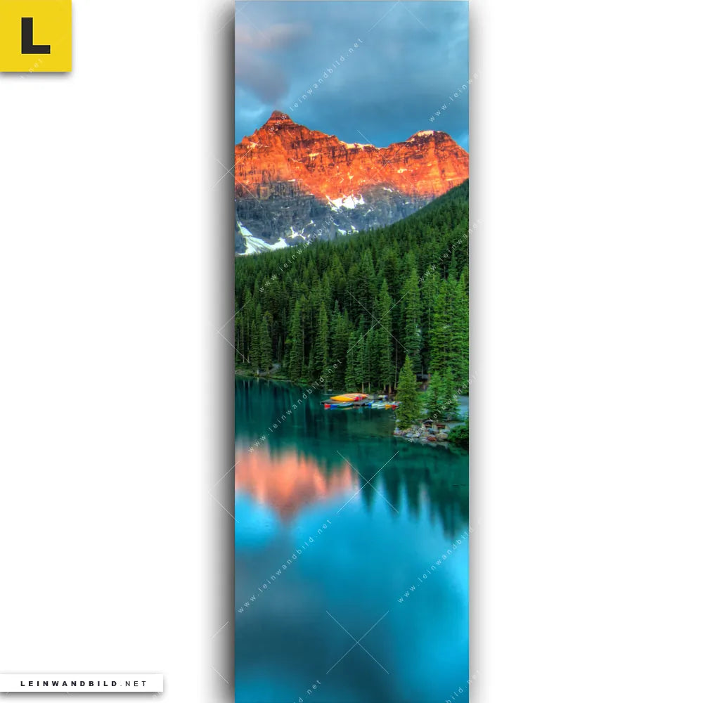 Du konfigurierst Dein individuelles Leinwandbild | Moränensee Sonnenaufgang | Schmal und wir produzieren es NEU für Dich. Unsere Landschaften Leinwände sind KEINE Lagerware. Du bist Dir unsicher, welches Motiv oder Format das richtige für dein individuelles Keilrahmenbild ist, dann helfen wir dir gerne weiter und beraten dich!