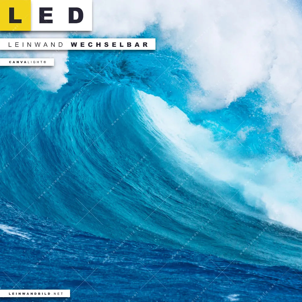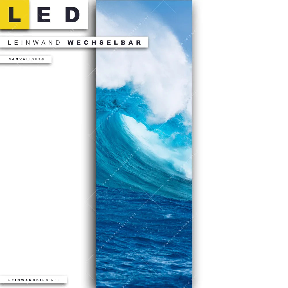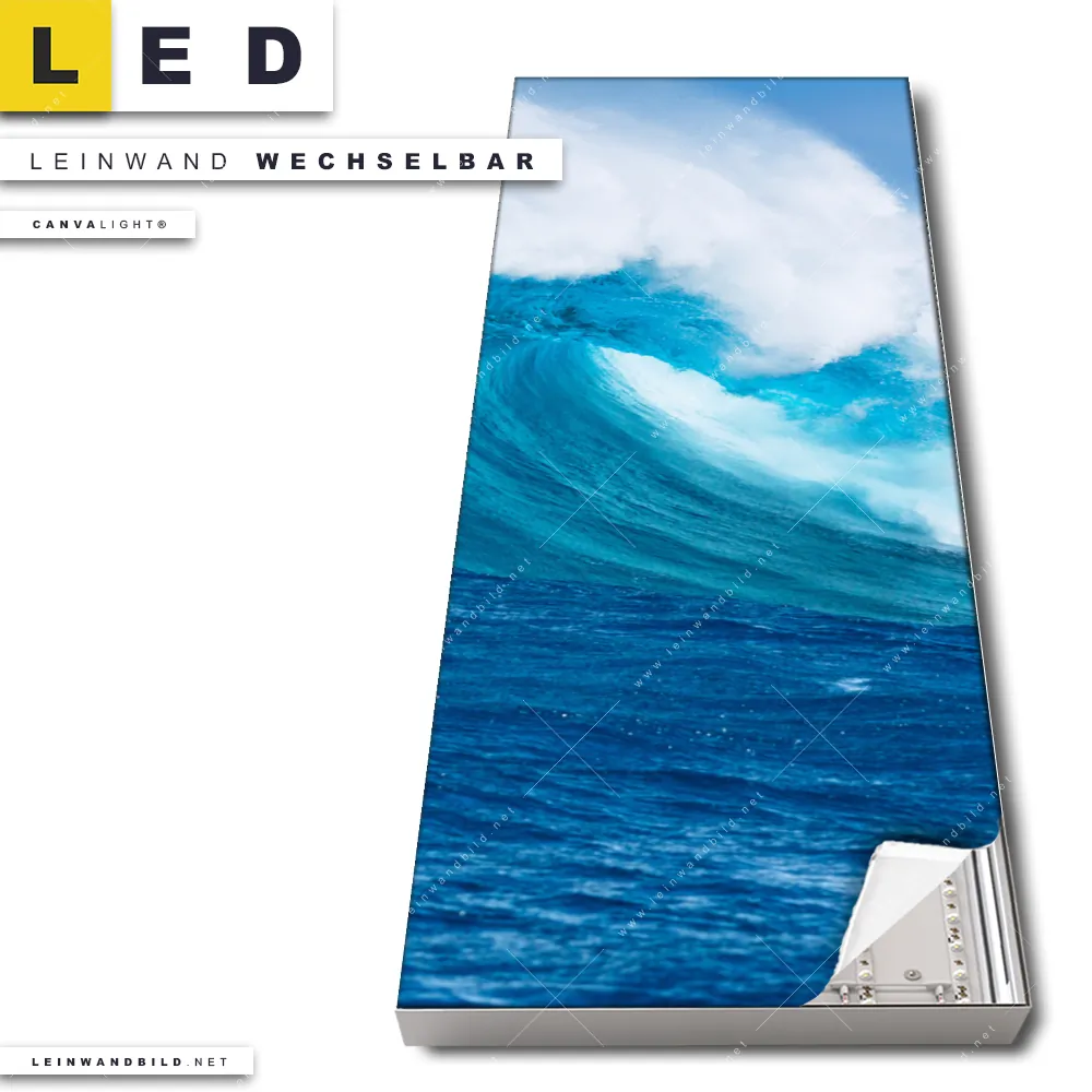 LED Leinwandbild Canvalight® TEX | Blaue Welle im Meer | Schmal