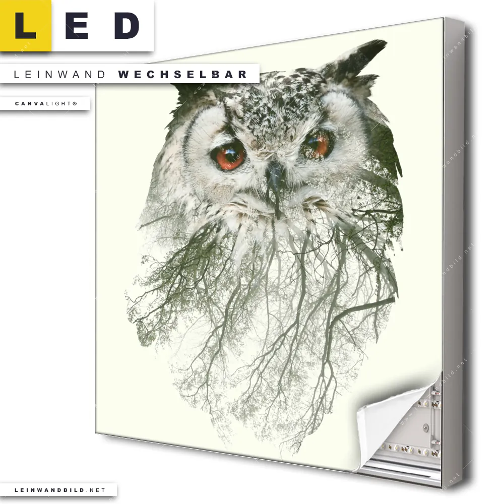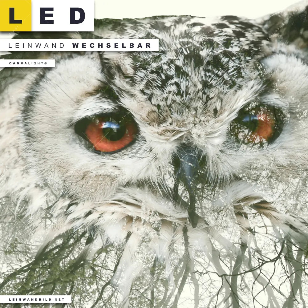 Du bist auf der Suche nach einem Tierwelt LED Leinwandbild im Quadratischen Format? Begriffe wie Vogel, Eule, Wald, Doppelbelichtung, Natur, skandinavisch, Bäume haben Dich auf der Suche nach Deinem neuen XXL LED Wandbild mit wechselbarer Leinwand inspiriert? Farben wie Weiss, Beige dürfen auf Deinem neuen Leinwand-LED-Bild nicht fehlen und Leuchtbilder im Modern Art Stil passen perfekt zu Deinem Einrichtungsstil?