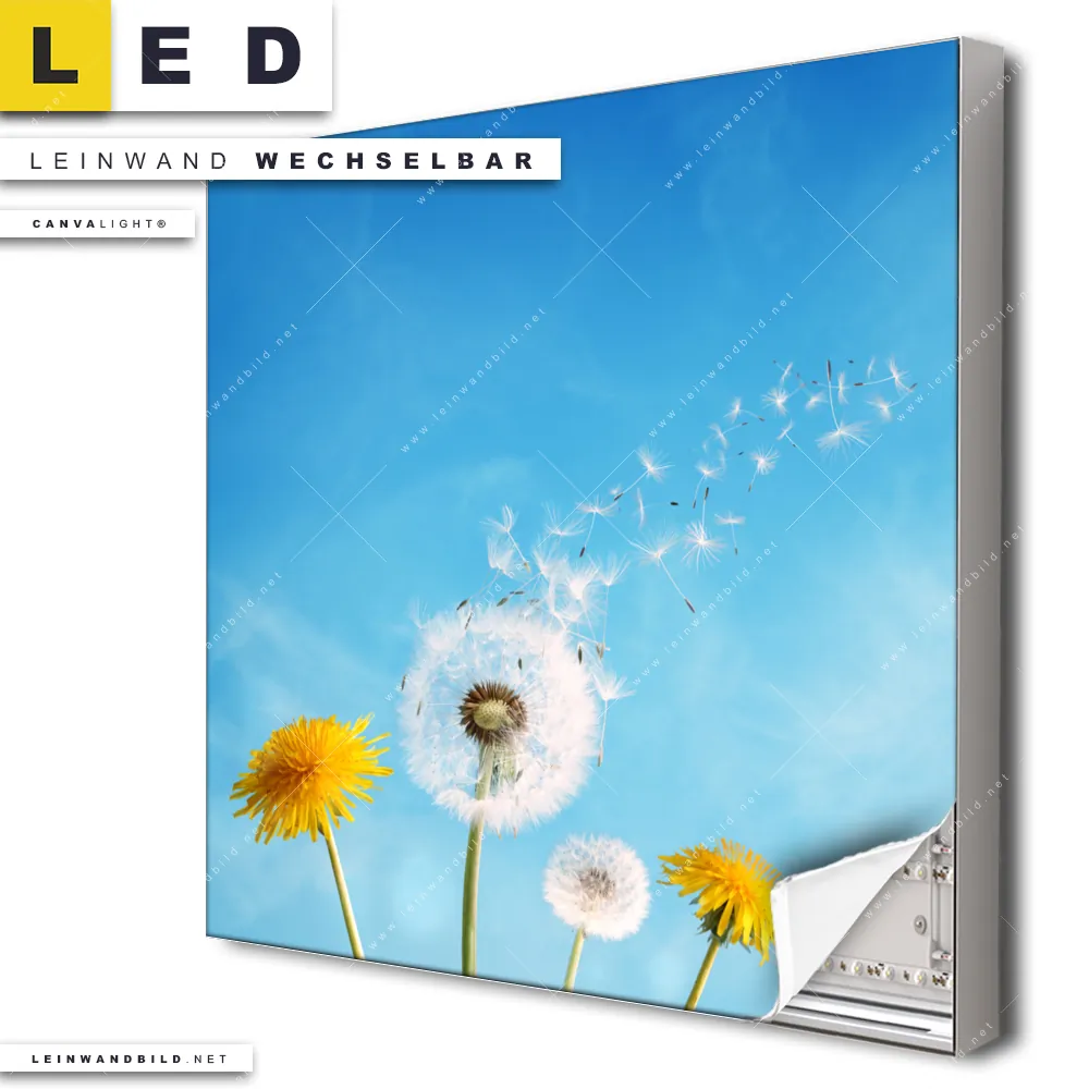 Du bist auf der Suche nach einem Blumen - Botanik LED Leinwandbild im Quadratischen Format? Begriffe wie Blume, Botanik, Pflanze, Natur, Nahaufnahme, Pusteblume, Dandelion, Löwenzahn haben Dich auf der Suche nach Deinem neuen XXL LED Wandbild mit wechselbarer Leinwand inspiriert? Farben wie Weiss, Blau, Gelb , Hellgrün, Grün, Türkis dürfen auf Deinem neuen Leinwand-LED-Bild nicht fehlen und Leuchtbilder im Floral, Natürlich - Realistisch Stil passen perfekt zu Deinem Einrichtungsstil?
