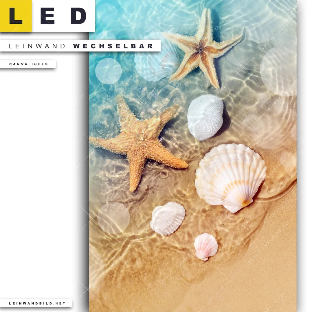 LED Leinwandbild Canvalight® TEX | Seesterne & Muscheln | Hochformat
