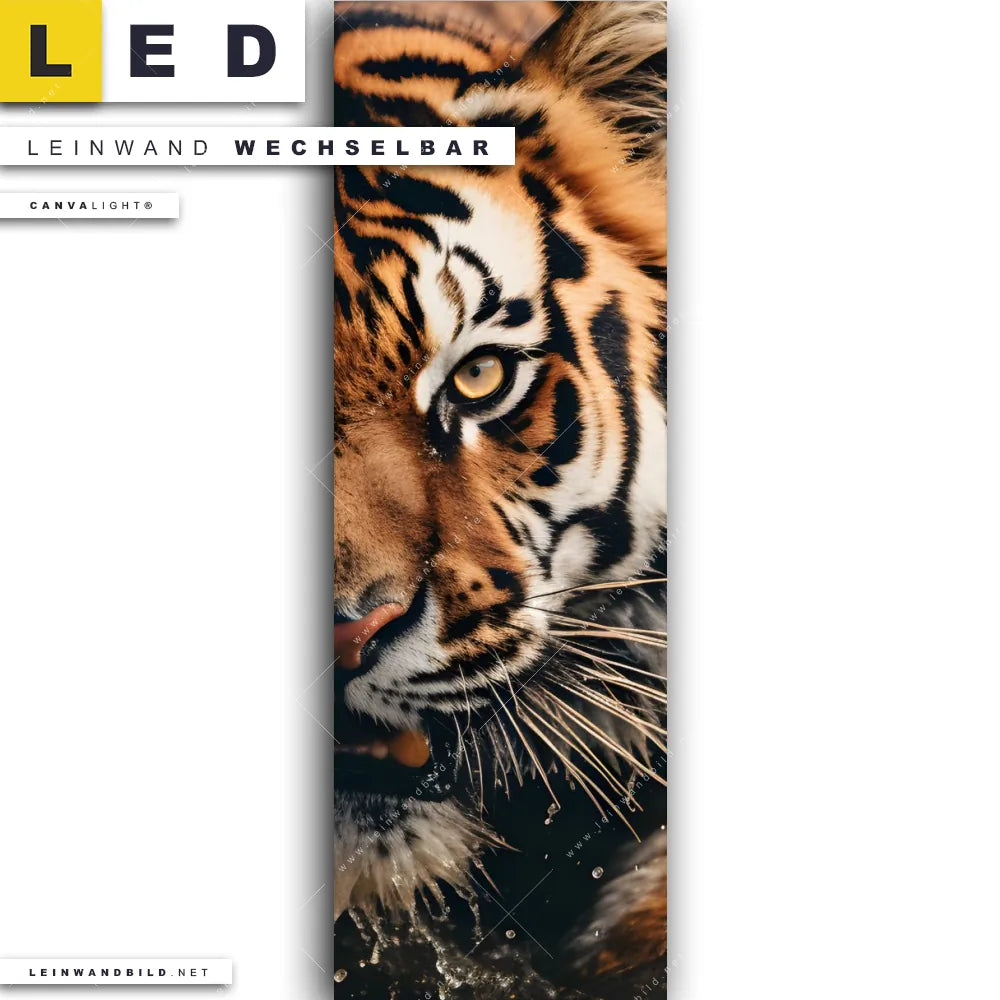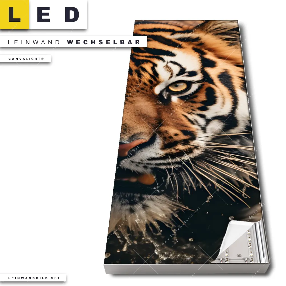 LED Leinwandbild Canvalight® TEX | Tiger im Wasser | Schmal