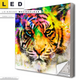 Dann sollte das LED Leinwandbild Canvalight® TEX | Abstrakter Tiger | Querformat den Weg zu Dir finden. Das stufenlos dimmbare Leinwandbild bunter Tiger im steckerfertigen Leuchtrahmen mit Fernbedienung und optionaler Farbtemperatursteuerung fügt sich als Eye-Catcher harmonisch in jedes Bar - Gastronomie, Wohnzimmer - Schlafzimmer Raumkonzept ein.