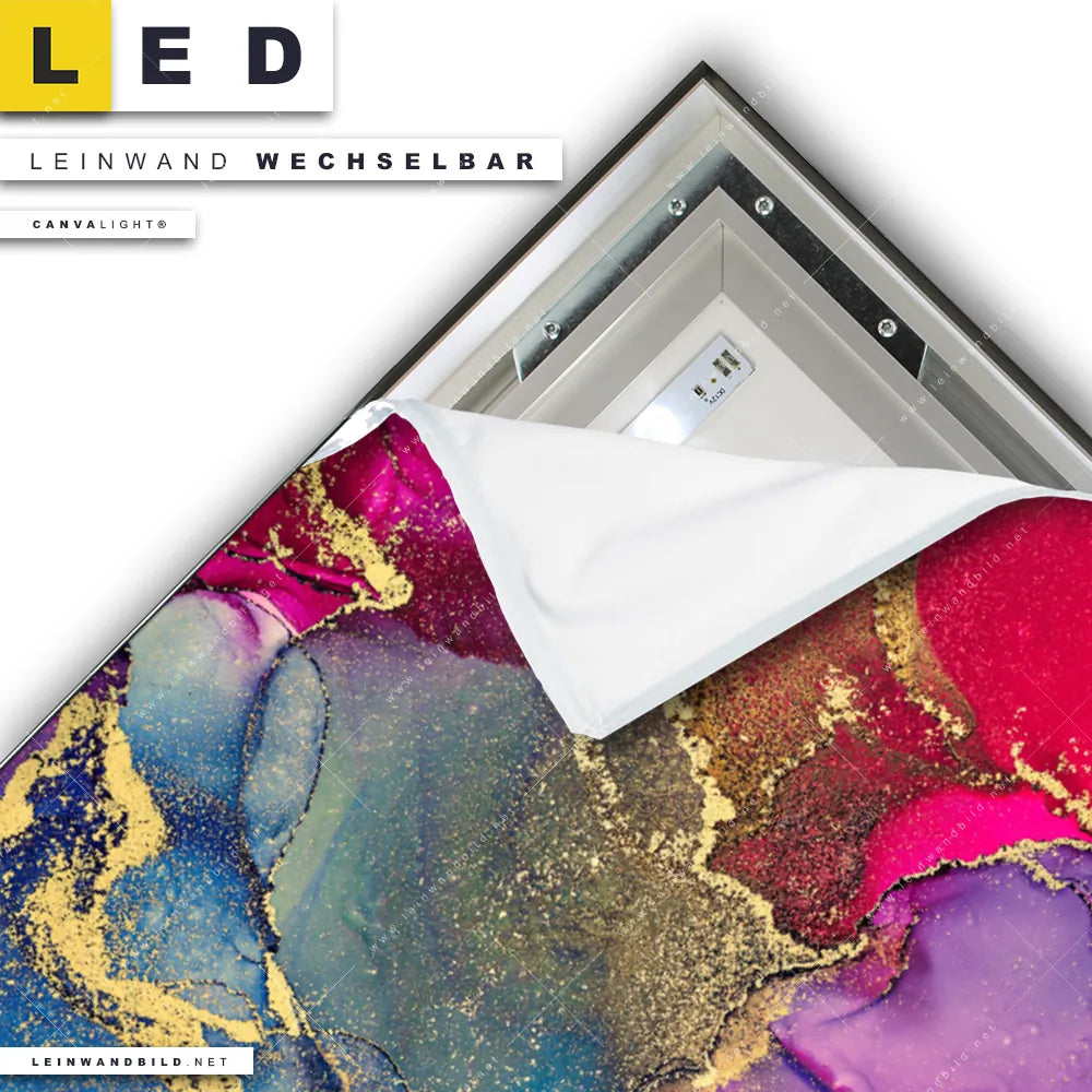 Du konfigurierst Dein individuelles LED Leinwandbild Canvalight® TEX | Fluid Art Frühlingszauber | Hochformat und wir produzieren es NEU für Dich. Unsere Muster - Texturen LED Bilder mit wechselbarer Textil-Leinwand sind KEINE Lagerware. Du bist Dir unsicher, welches Motiv oder Format das richtige für dein individuelles Canvalight® Leuchtbild ist, dann helfen wir dir gerne weiter und beraten dich!