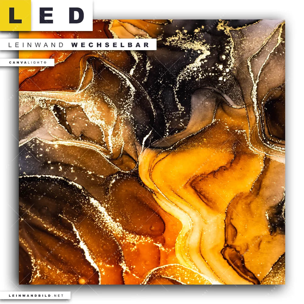 Du bist auf der Suche nach einem Muster - Texturen LED Leinwandbild im Quadratischen Format? Begriffe wie Flüssigkeit, Acryl, flüssig, Farbe, Marmorierung, Fluid Art haben Dich auf der Suche nach Deinem neuen XXL LED Wandbild mit wechselbarer Leinwand inspiriert? Farben wie Gold, Braun, Rot, Ocker, Blau, Orange dürfen auf Deinem neuen Leinwand-LED-Bild nicht fehlen und Leuchtbilder im Abstrakt, Modern Art Stil passen perfekt zu Deinem Einrichtungsstil?