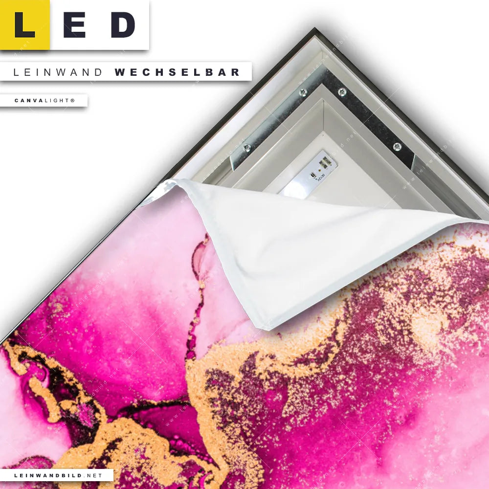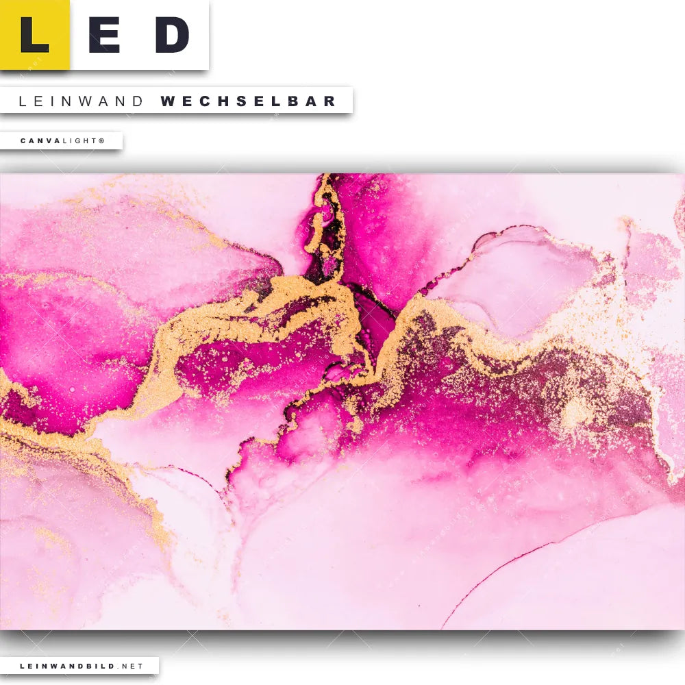 Du bist auf der Suche nach einem Muster - Texturen LED Leinwandbild im Querformat? Begriffe wie Flüssigkeit, Acryl, flüssig, Farbe, Marmorierung, Tinte, Alkohol, Fluid Art haben Dich auf der Suche nach Deinem neuen XXL LED Wandbild mit wechselbarer Leinwand inspiriert? Farben wie Gold, Weiss, Pink, Rosa dürfen auf Deinem neuen breiten Leinwand-LED-Bild nicht fehlen und Leuchtbilder im Abstrakt, Modern Art Stil passen perfekt zu Deinem Einrichtungsstil?