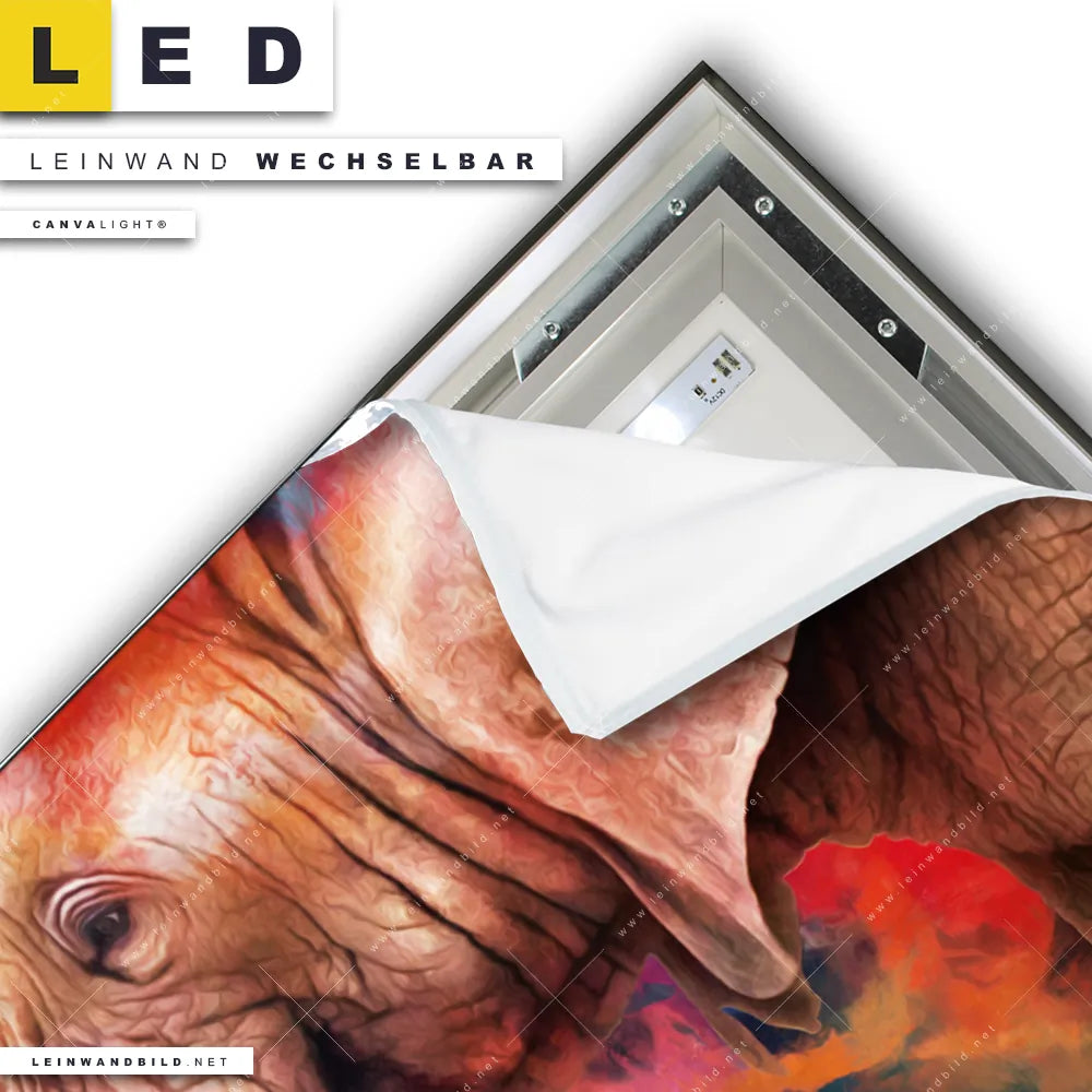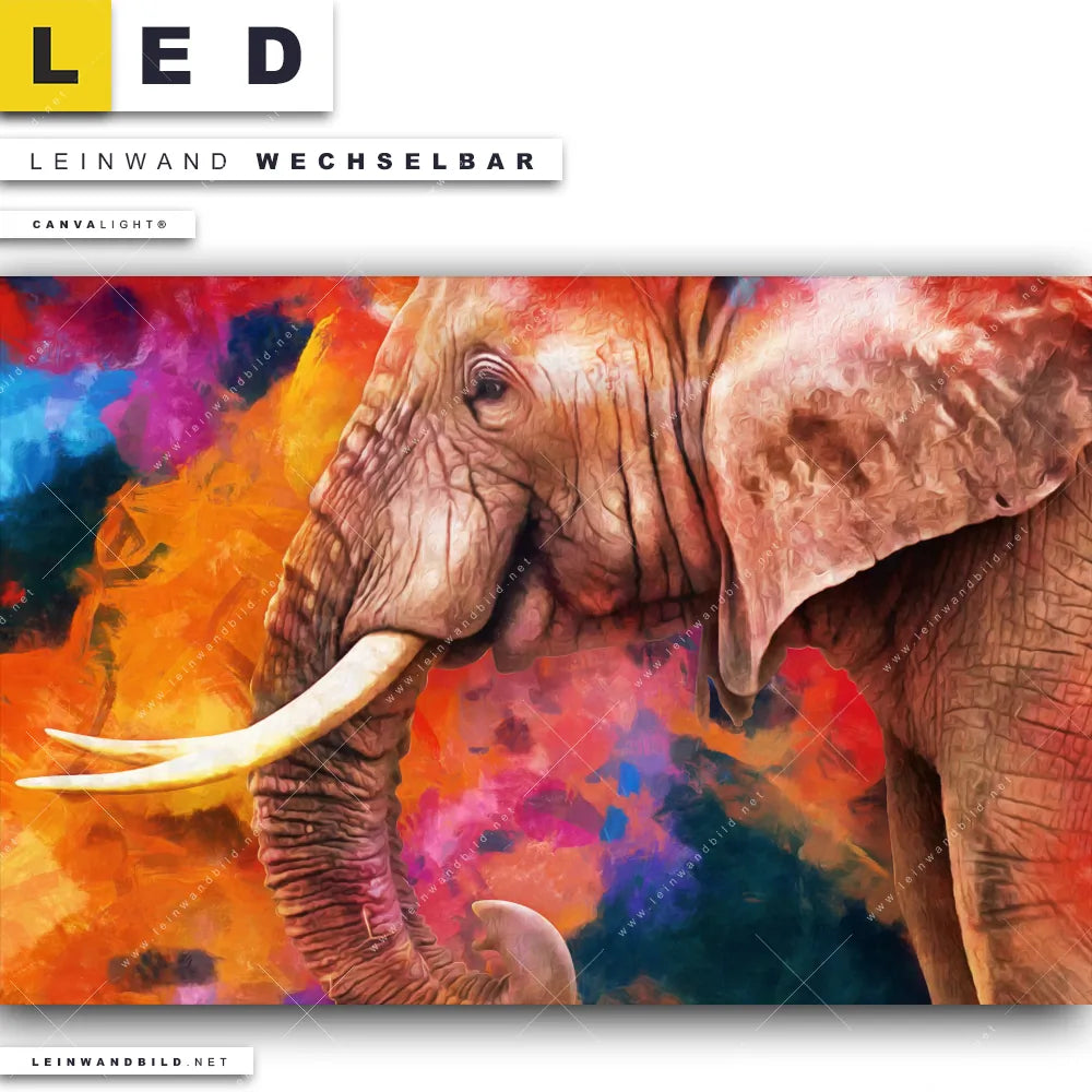 LED Leinwandbild Canvalight® TEX | Moderner Bunter Elefant | Querformat