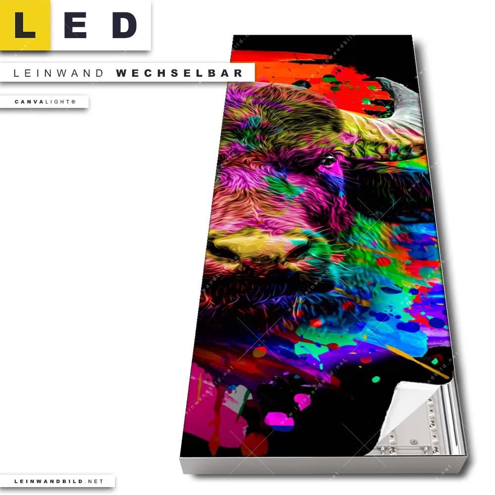 LED Leinwandbild Canvalight® TEX | Pop Art Stier | Schmal