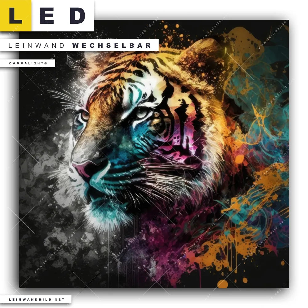 Du bist auf der Suche nach einem Tierwelt LED Leinwandbild im Quadratischen Format? Begriffe wie Tiger, Afrika, Dschungel, Farbexplosion, Farbspritzer, Splash haben Dich auf der Suche nach Deinem neuen XXL LED Wandbild mit wechselbarer Leinwand inspiriert? Farben wie Schwarz, Bunt dürfen auf Deinem neuen Leinwand-LED-Bild nicht fehlen und Leuchtbilder im Abstrakt, Modern Art, Pop Art Stil passen perfekt zu Deinem Einrichtungsstil?