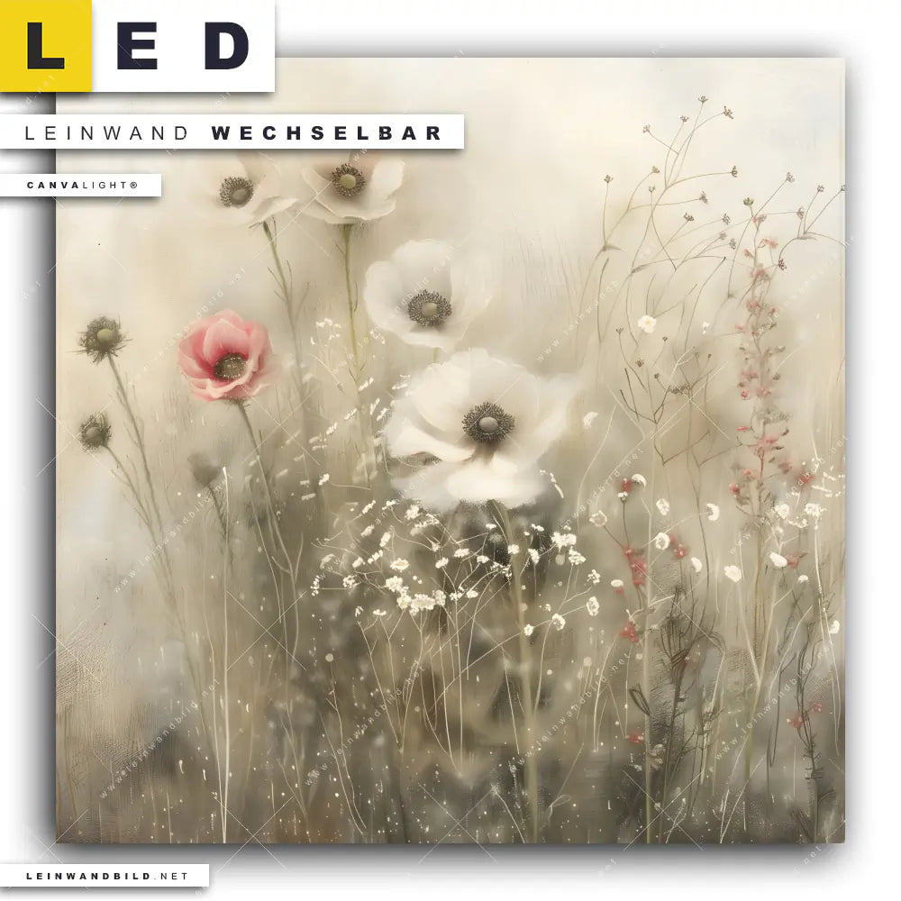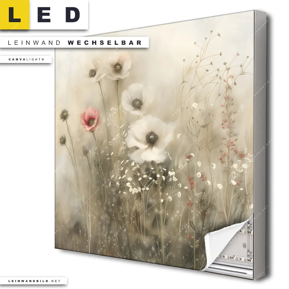 LED Leinwandbild Canvalight® TEX | Zarte Wildblumen in Pastelltönen | Quadrat