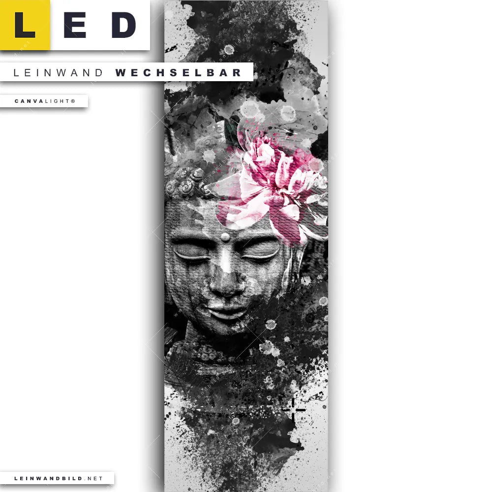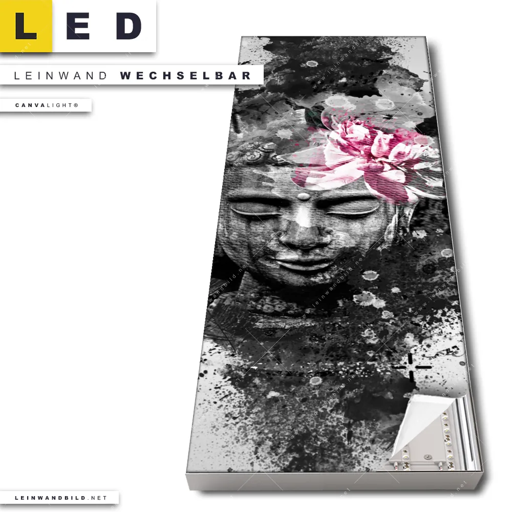 Du bist auf der Suche nach einem Buddha - Feng Shui, Blumen - Botanik LED Leinwandbild im Schmalen Format? Begriffe wie Grunge, Streetart, modern, Porträt, Gesicht, Buddha, Meditation, Blüte, Blume haben Dich auf der Suche nach Deinem neuen XXL LED Wandbild mit wechselbarer Leinwand inspiriert? Farben wie Weiss, Schwarz, Pink, Grau dürfen auf Deinem neuen Leinwand-LED-Bild im Panorama-Hochformat nicht fehlen und Leuchtbilder im Grunge, Mixed Media, Modern Art, Schwarz - Weiss, Street Art Stil passen perfekt zu Deinem Einrichtungsstil?
