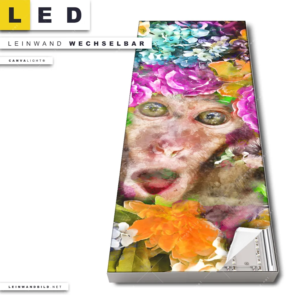 LED Leinwandbild Canvalight® TEX | Äffchen & Blumen | Schmal