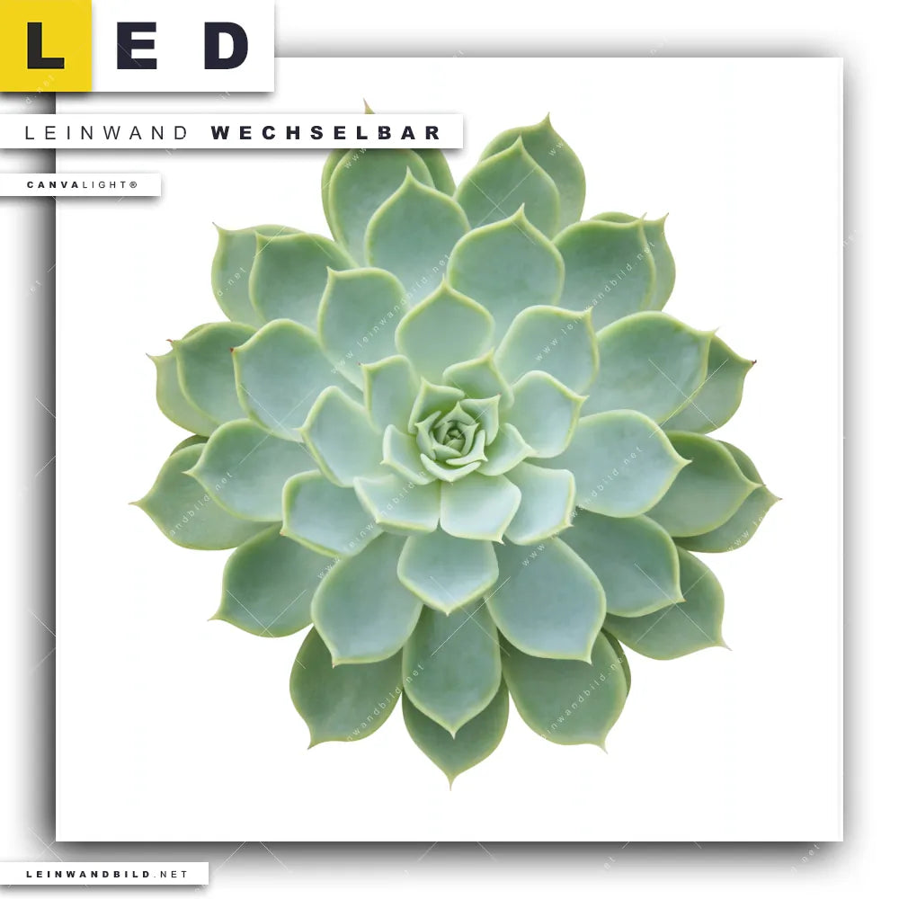 Du bist auf der Suche nach einem Blumen - Botanik LED Leinwandbild im Quadratischen Format? Begriffe wie Blumen | Botanik, Pflanze, Natur, Kaktus, Blüte, Wüste, Nahaufnahme, Draufsicht, exotisch, tropisch haben Dich auf der Suche nach Deinem neuen XXL LED Wandbild mit wechselbarer Leinwand inspiriert? Farben wie Grün, Weiss dürfen auf Deinem neuen Leinwand-LED-Bild nicht fehlen und Leuchtbilder im Floral, Minimalistisch Stil passen perfekt zu Deinem Einrichtungsstil?