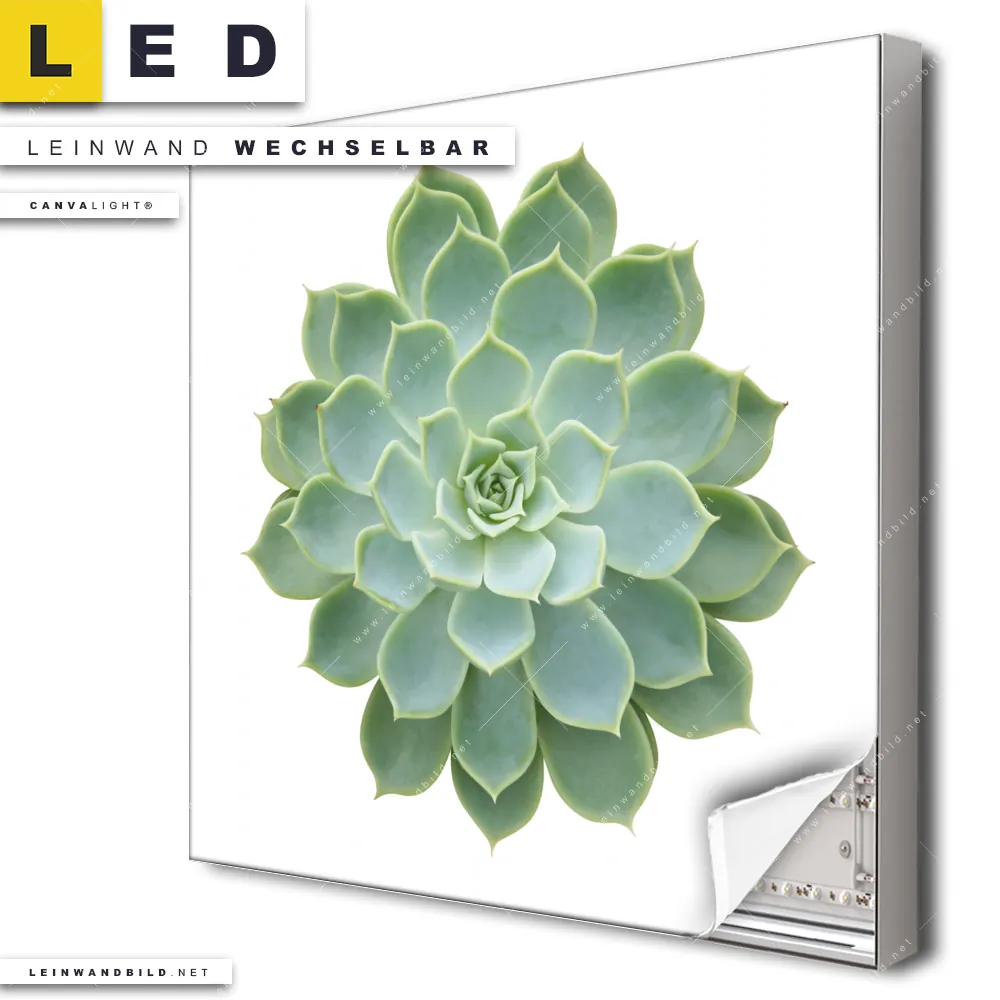Du konfigurierst Dein individuelles LED Leinwandbild Canvalight® TEX | Sukkulente No.2 | Quadrat und wir produzieren es NEU für Dich. Unsere Blumen - Botanik LED Bilder mit wechselbarer Textil-Leinwand sind KEINE Lagerware. Du bist Dir unsicher, welches Motiv oder Format das richtige für dein individuelles Canvalight® Leuchtbild ist, dann helfen wir dir gerne weiter und beraten dich!