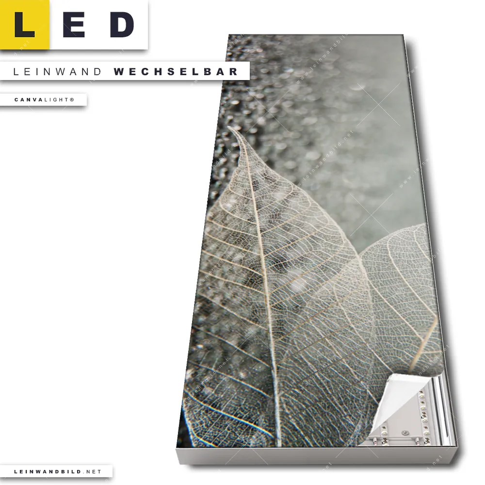 LED Leinwandbild Canvalight® TEX | Weiße Blätter | Schmal