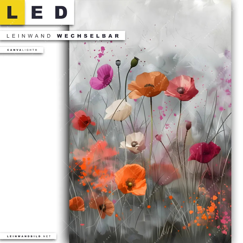 LED Leinwandbild Canvalight® TEX | Zarte Mohnblumen im Wind | Hochformat