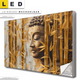 LED Leinwandbild Canvalight® TEX | Buddha-Statue im goldenen Bambus | Quadrat