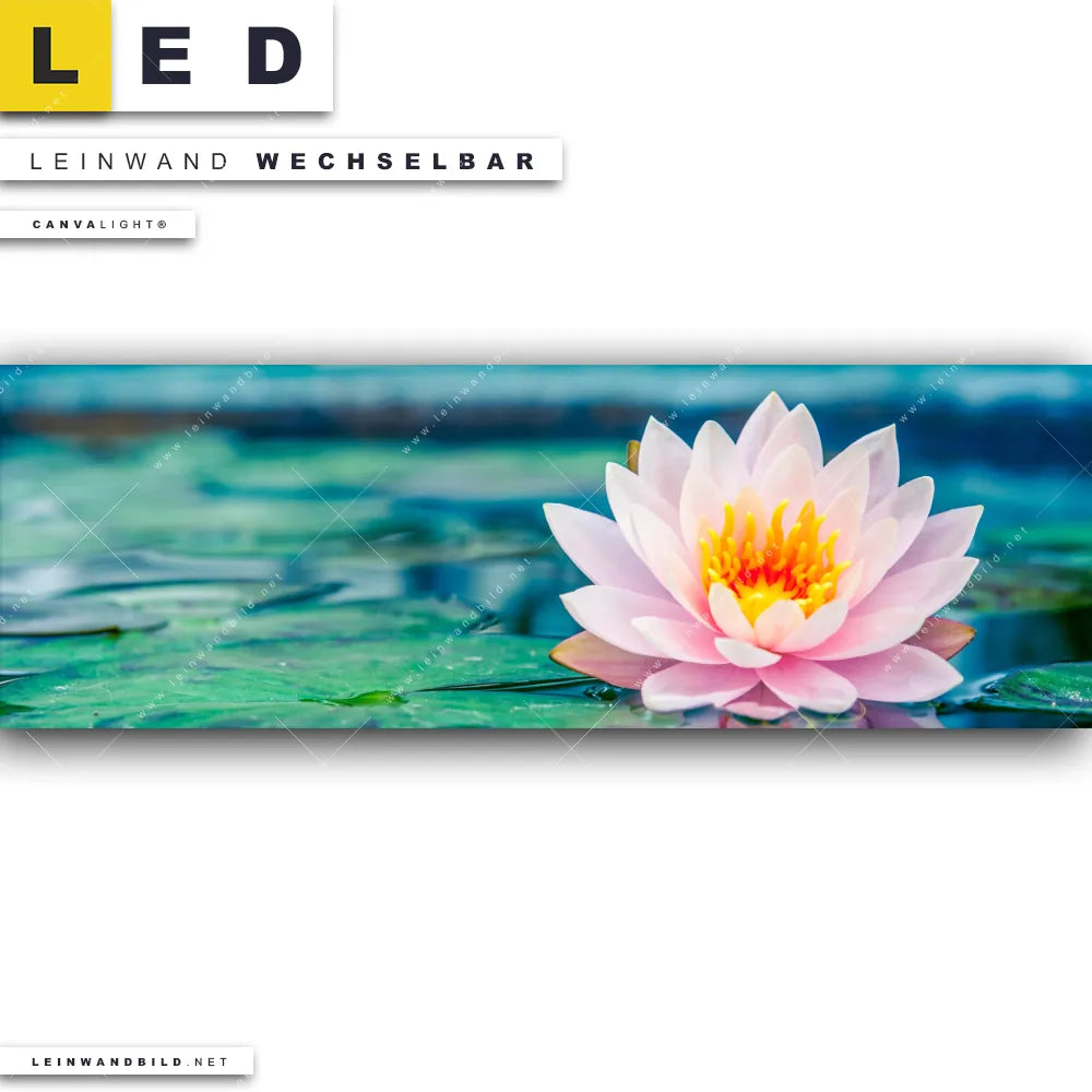 Du bist auf der Suche nach einem Blumen - Botanik, Buddha - Feng Shui LED Leinwandbild im Panorama-Format? Begriffe wie Blume, Blüte, Seerose, Lotusblume, Teich, Wasser haben Dich auf der Suche nach Deinem neuen XXL LED Wandbild mit wechselbarer Leinwand inspiriert? Farben wie Grün, Mint, Blau, Pink, Rot, Rosa, Gelb dürfen auf Deinem neuen extra breiten Leinwand-LED-Bild nicht fehlen und Leuchtbilder im Floral, Natürlich - Realistisch Stil passen perfekt zu Deinem Einrichtungsstil?