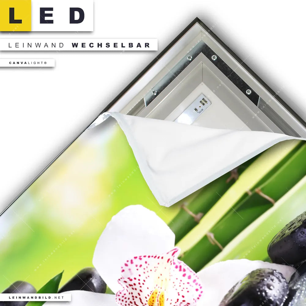 Du konfigurierst Dein individuelles LED Leinwandbild Canvalight® TEX | Spa Wellness Steine | Querformat und wir produzieren es NEU für Dich. Unsere Blumen - Botanik, Buddha - Feng Shui LED Bilder mit wechselbarer Textil-Leinwand sind KEINE Lagerware. Du bist Dir unsicher, welches Motiv oder Format das richtige für dein individuelles Canvalight® Leuchtbild ist, dann helfen wir dir gerne weiter und beraten dich!