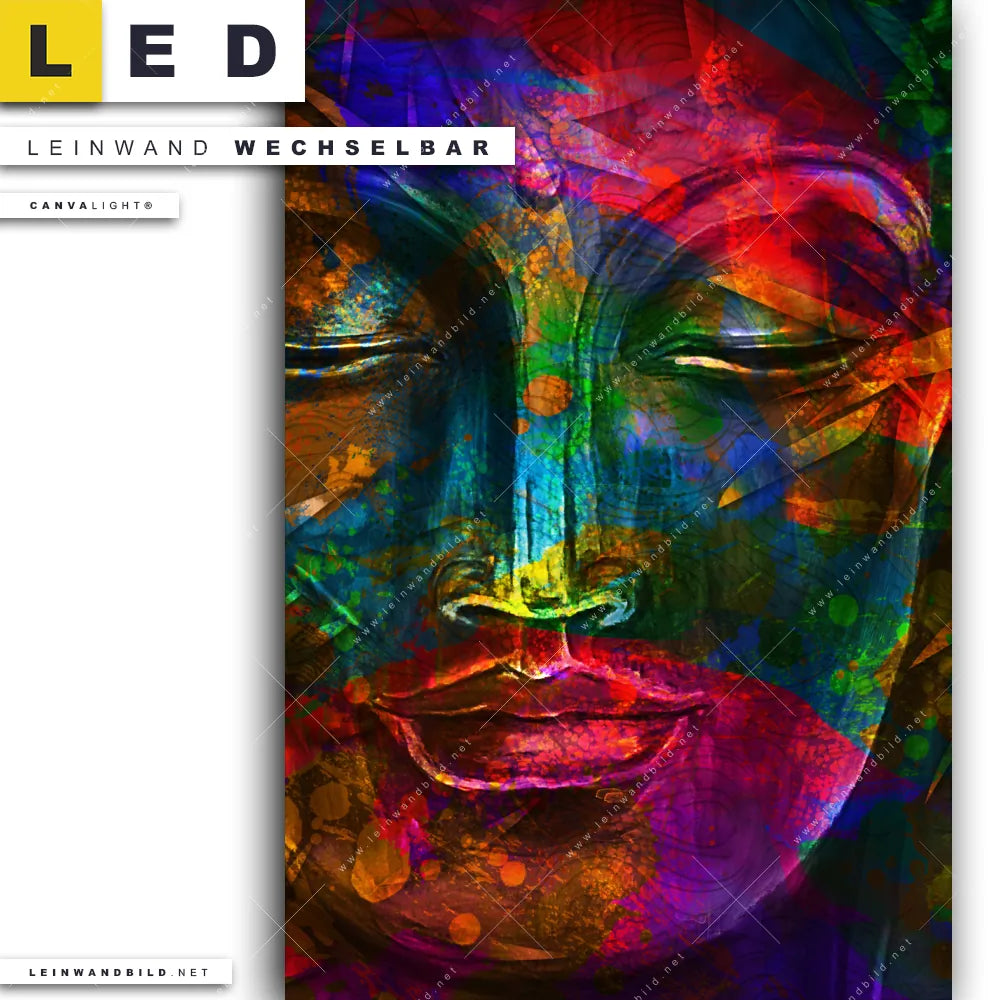 LED Leinwandbild Canvalight® TEX | Bunter Buddha | Hochformat