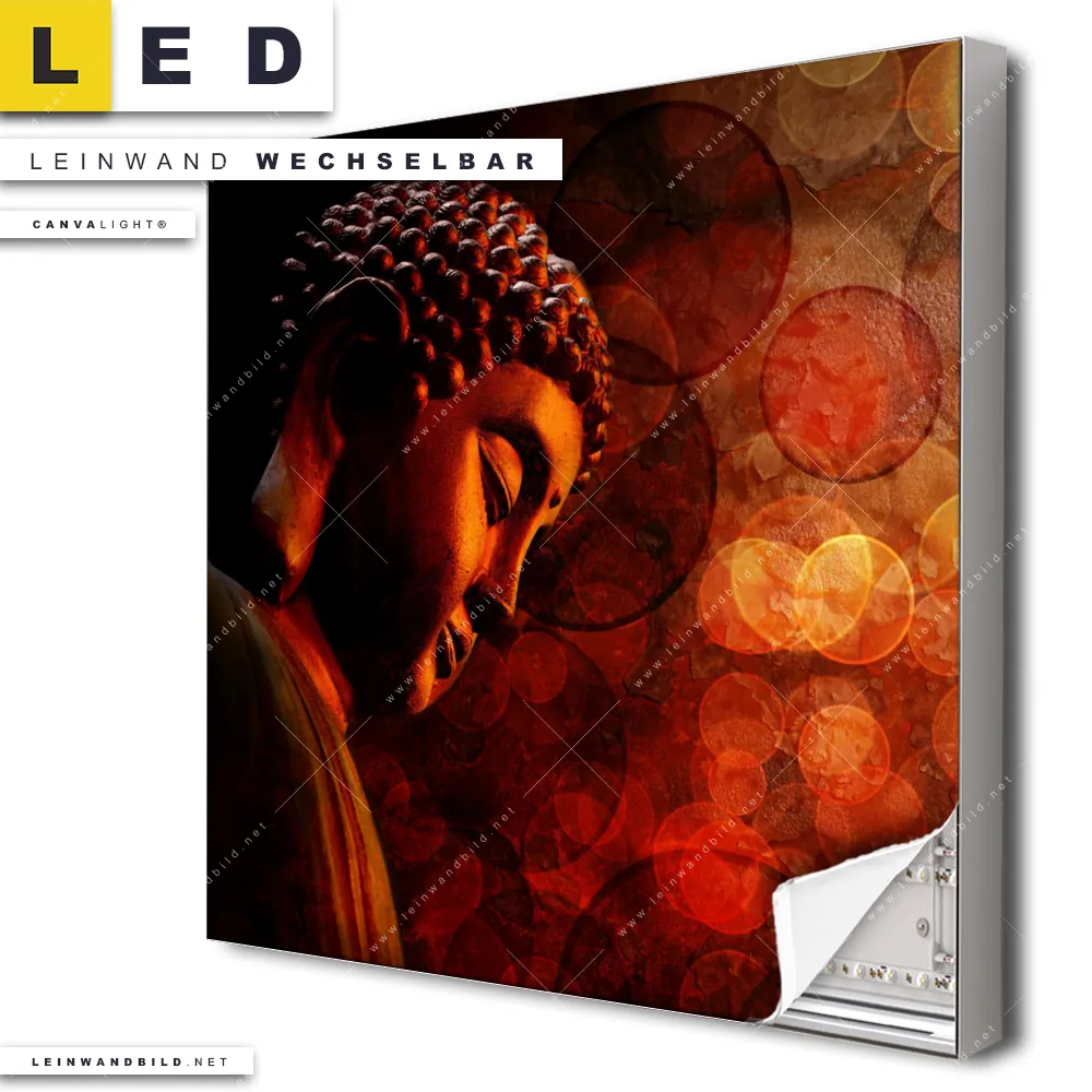 Du bist auf der Suche nach einem Buddha - Feng Shui LED Leinwandbild im Quadratischen Format? Begriffe wie Buddha, Buddhismus, Religion, Feng Shui, Zen, Meditation haben Dich auf der Suche nach Deinem neuen XXL LED Wandbild mit wechselbarer Leinwand inspiriert? Farben wie Orange, Rot, Gold, Gelb dürfen auf Deinem neuen Leinwand-LED-Bild nicht fehlen und Leuchtbilder im Mixed Media, Modern Art Stil passen perfekt zu Deinem Einrichtungsstil?