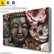 LED Leinwandbild Canvalight® TEX | Buddha-Statue mit Blüten | Querformat