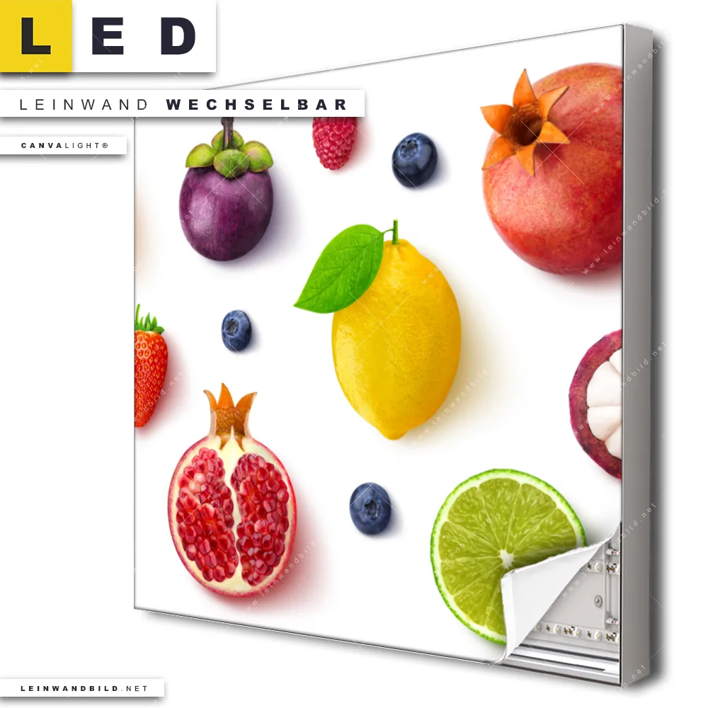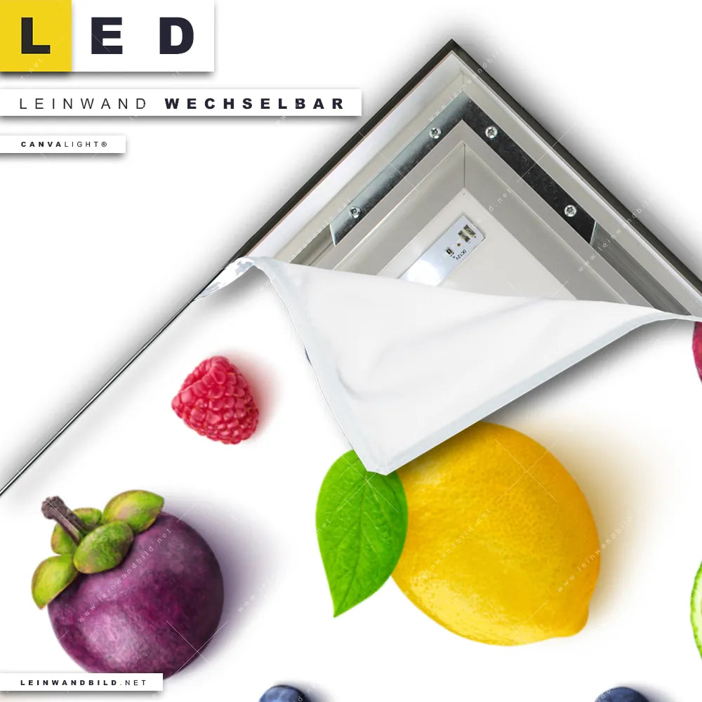Du konfigurierst Dein individuelles LED Leinwandbild Canvalight® TEX | Exotische Früchte | Quadrat und wir produzieren es NEU für Dich. Unsere Essen - Trinken LED Bilder mit wechselbarer Textil-Leinwand sind KEINE Lagerware. Du bist Dir unsicher, welches Motiv oder Format das richtige für dein individuelles Canvalight® Leuchtbild ist, dann helfen wir dir gerne weiter und beraten dich!