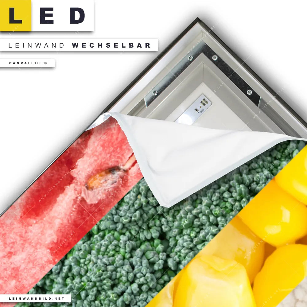 Du konfigurierst Dein individuelles LED Leinwandbild Canvalight® TEX | Gesunde Ernährung | Hochformat und wir produzieren es NEU für Dich. Unsere Essen - Trinken LED Bilder mit wechselbarer Textil-Leinwand sind KEINE Lagerware. Du bist Dir unsicher, welches Motiv oder Format das richtige für dein individuelles Canvalight® Leuchtbild ist, dann helfen wir dir gerne weiter und beraten dich!