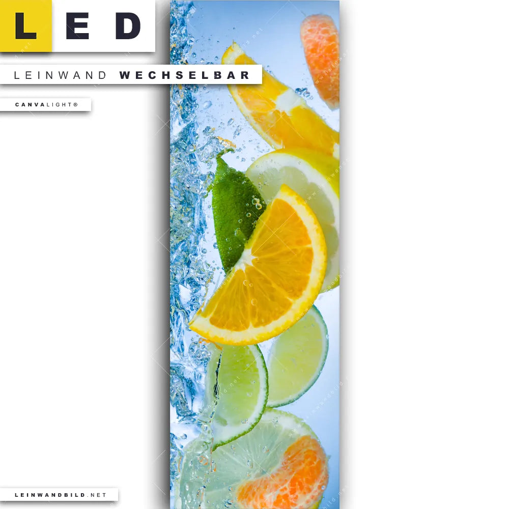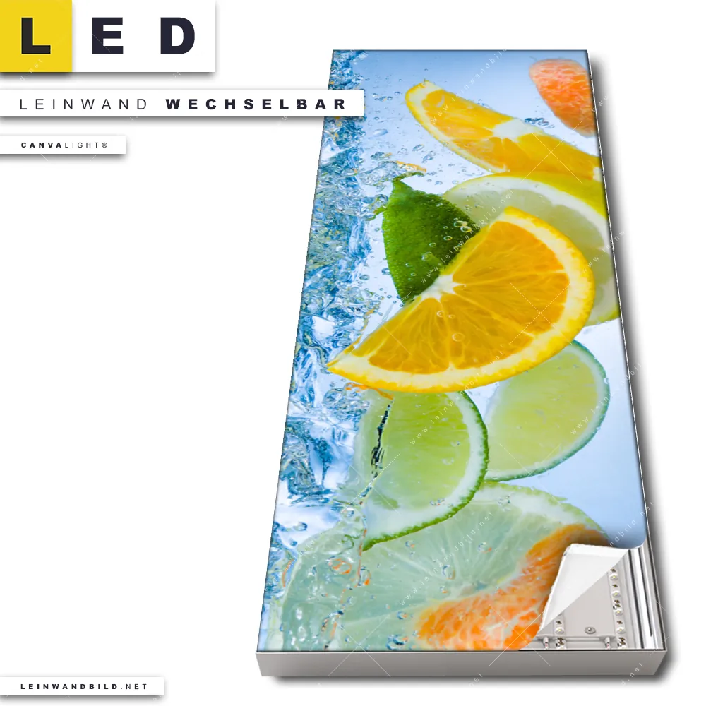 LED Leinwandbild Canvalight® TEX | Obst unter Wasser | Schmal