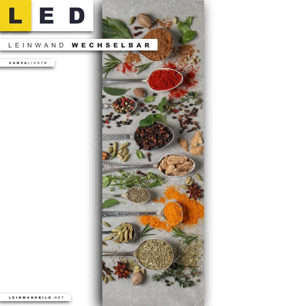 LED Leinwandbild Canvalight® TEX | Silberlöffel mit Gewürzen | Schmal