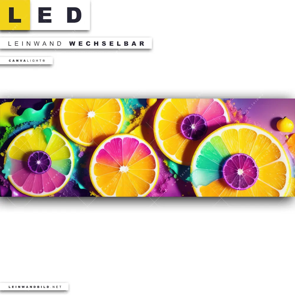 LED Leinwandbild Canvalight® TEX | Zitronen Neon Farbe | Panorama