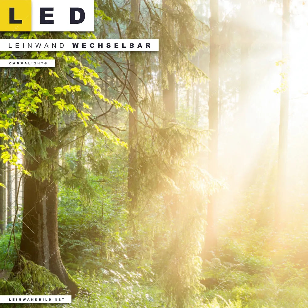 Bitte beachte, dass die Farben, der auf dem Monitor abgebildeten Sonnenstrahlen im Wald Darstellung, möglicherweise von den Originalfarben deines LED Leinwandbildes abweichen können.