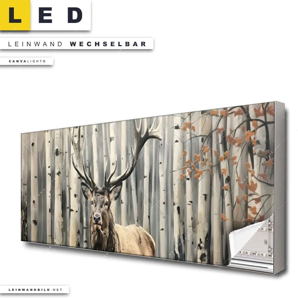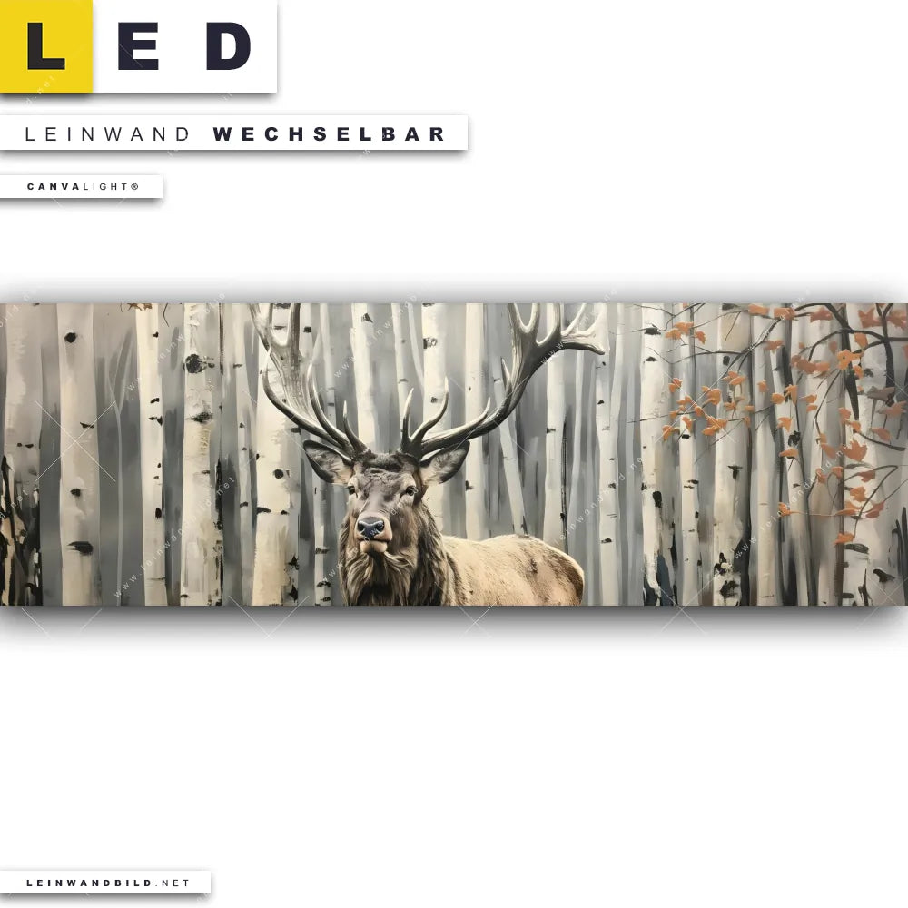 LED Leinwandbild Canvalight® TEX | Hirsch im Birkenwald | Panorama