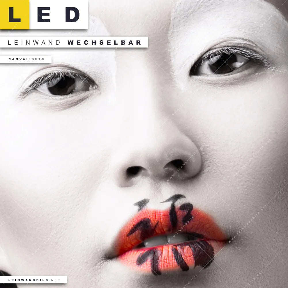 Du bist auf der Suche nach einem Porträts - Menschen LED Leinwandbild im Hochformat? Begriffe wie Frau, Porträt, Erotik, modern, Beauty, Gesicht, Körper, Lippen, asiatisch, Haut, Farbe, Bodypainting haben Dich auf der Suche nach Deinem neuen XXL LED Wandbild mit wechselbarer Leinwand inspiriert? Farben wie Schwarz, Weiss, Rot dürfen auf Deinem neuen Leinwand-LED-Bild nicht fehlen und Leuchtbilder im Schwarz - Weiss, Minimalistisch Stil passen perfekt zu Deinem Einrichtungsstil?