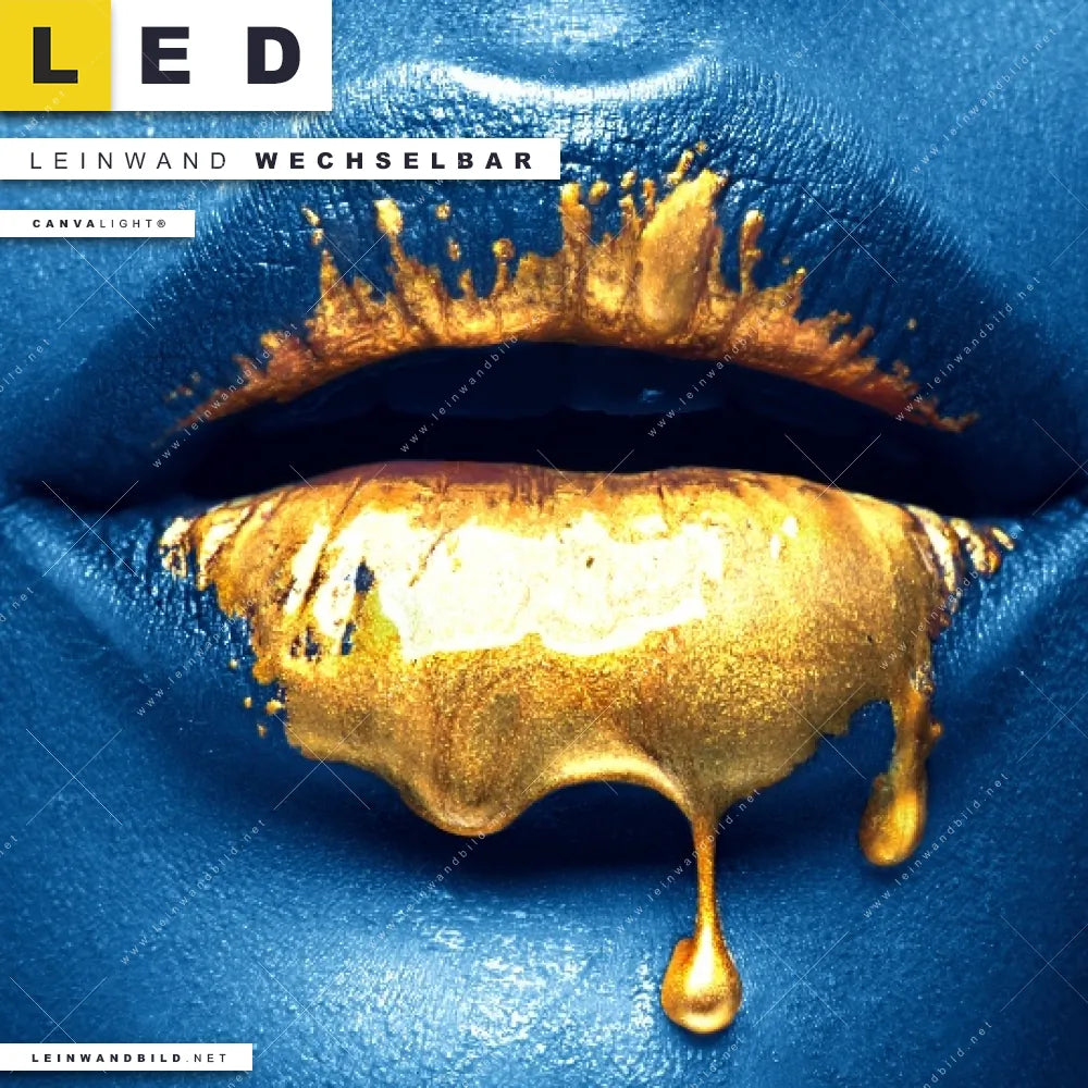 Du bist auf der Suche nach einem Porträts - Menschen LED Leinwandbild im Querformat? Begriffe wie Frau, Lippen, Mund, Farbe, Beauty haben Dich auf der Suche nach Deinem neuen XXL LED Wandbild mit wechselbarer Leinwand inspiriert? Farben wie Gold, Blau dürfen auf Deinem neuen breiten Leinwand-LED-Bild nicht fehlen und Leuchtbilder im Modern Art Stil passen perfekt zu Deinem Einrichtungsstil?