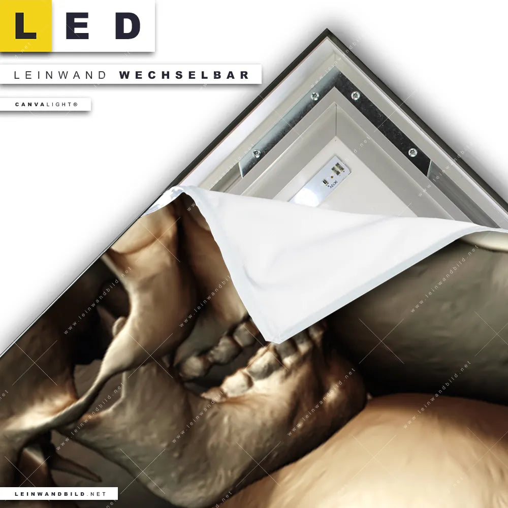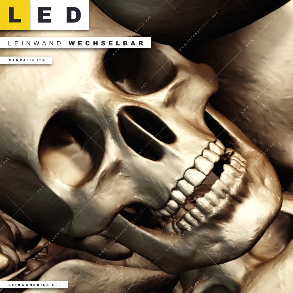 Du bist auf der Suche nach einem Porträts - Menschen LED Leinwandbild im Panorama-Format? Begriffe wie Schädel, Totenkopf, Skelett, Skull, Knochen, Totenköpfe haben Dich auf der Suche nach Deinem neuen XXL LED Wandbild mit wechselbarer Leinwand inspiriert? Farben wie Gold dürfen auf Deinem neuen extra breiten Leinwand-LED-Bild nicht fehlen und Leuchtbilder im Modern Art Stil passen perfekt zu Deinem Einrichtungsstil?