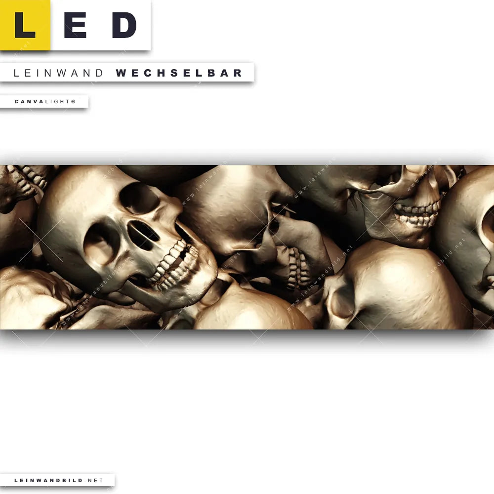 LED Leinwandbild Canvalight® TEX | Goldene Schädel | Panorama