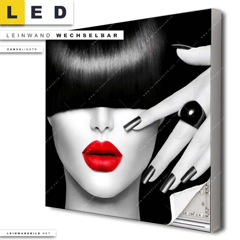 LED Leinwandbild Canvalight® TEX | Schwarze Eleganz & rote Lippen | Quadrat