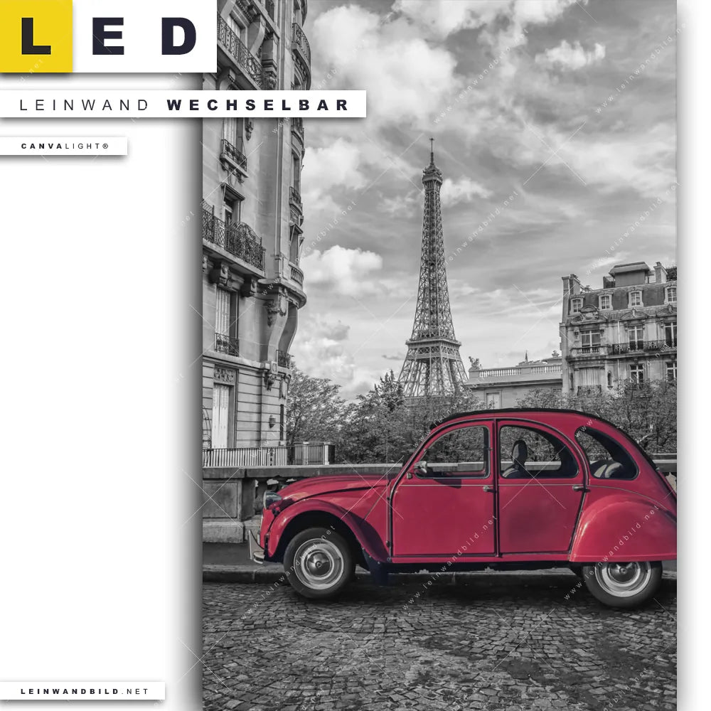 Du bist auf der Suche nach einem Städte - Skylines, Fahrzeuge LED Leinwandbild im Hochformat? Begriffe wie Sehenswürdigkeiten, Frankreich, Paris, Eifelturm, Auto, Ente, Schwarzweiss, Eiffelturm, Oldtimer haben Dich auf der Suche nach Deinem neuen XXL LED Wandbild mit wechselbarer Leinwand inspiriert? Farben wie Weiss, Schwarz, Rot dürfen auf Deinem neuen Leinwand-LED-Bild nicht fehlen und Leuchtbilder im Modern Art, Minimalistisch, Schwarz - Weiss Stil passen perfekt zu Deinem Einrichtungsstil?