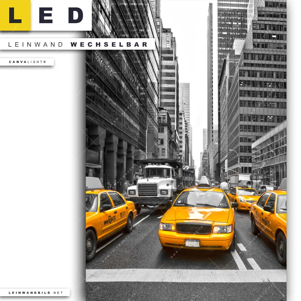 LED Leinwandbild Canvalight® TEX | Gelbe Taxis New York | Hochformat