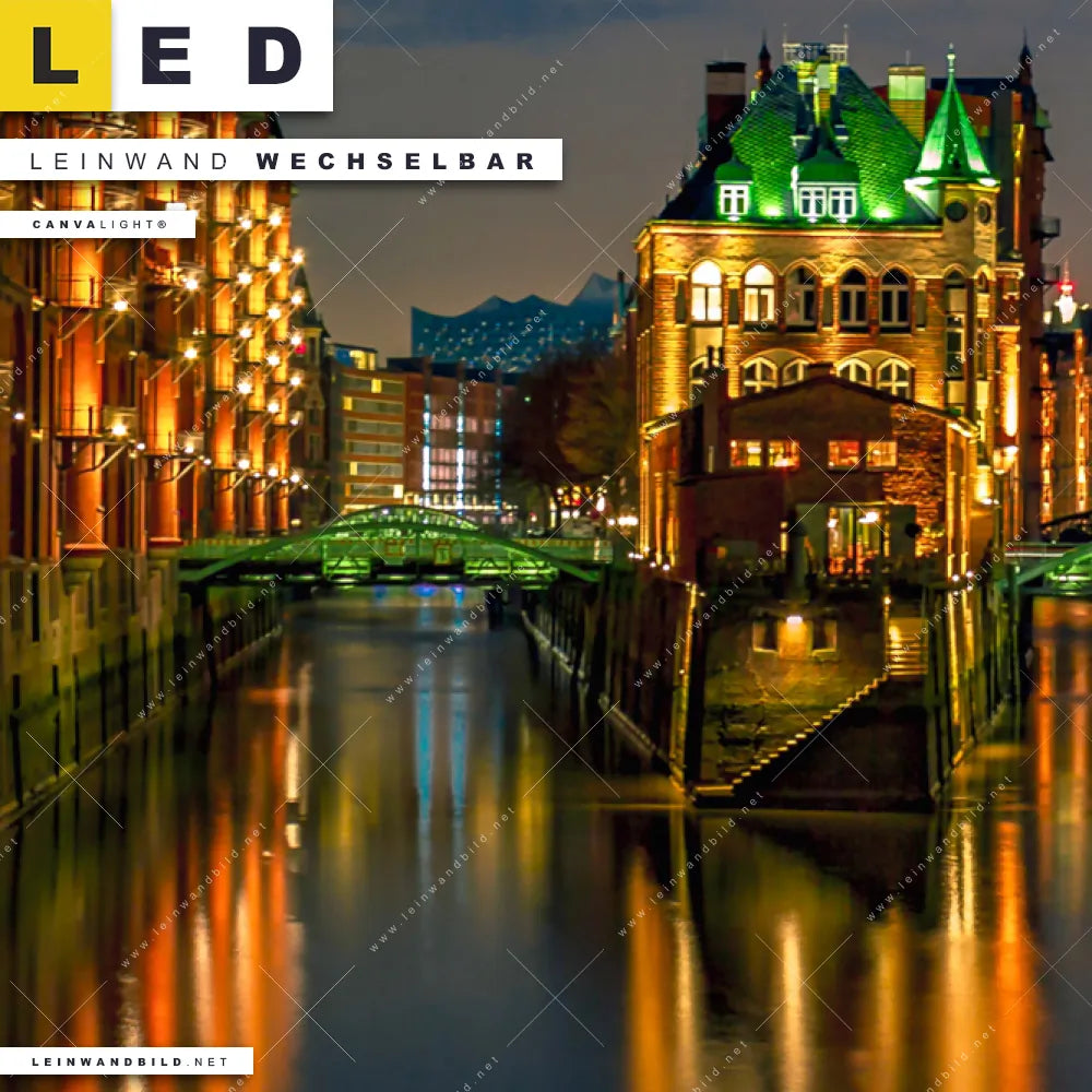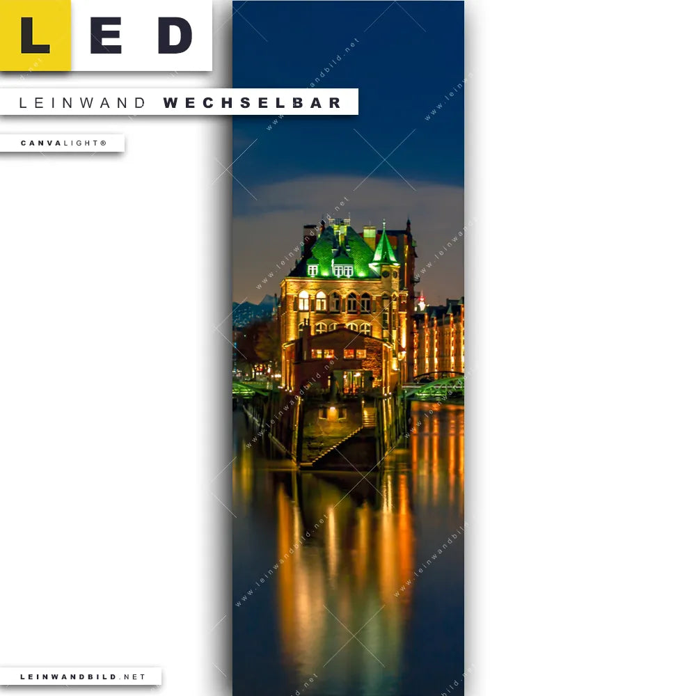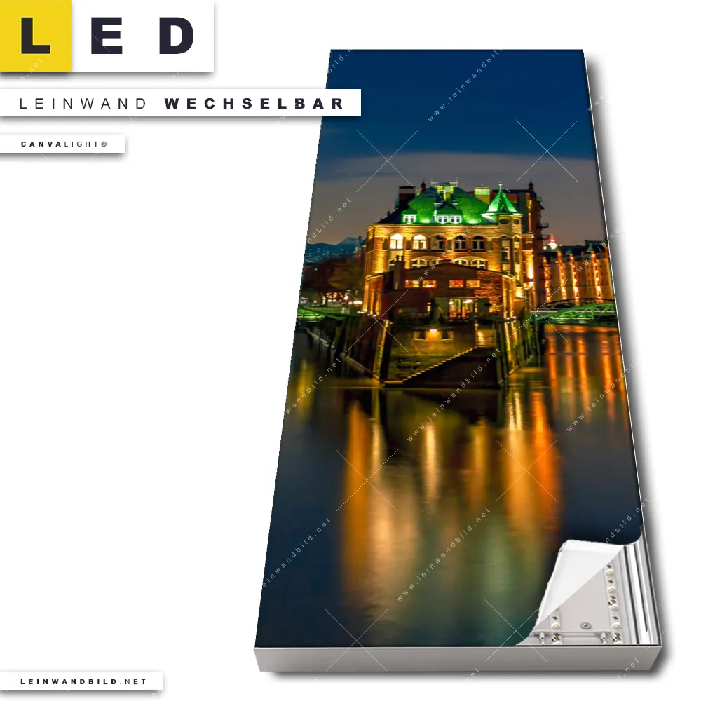 LED Leinwandbild Canvalight® TEX | Speicherstadt Hamburg | Schmal