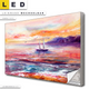 LED Leinwandbild Canvalight® TEX | Gemälde mit Boot im Sonnenuntergang | Hochformat