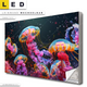 Bitte beachte, dass die Farben, der auf dem Monitor abgebildeten Unterwasserwelt mit Quallen Darstellung, möglicherweise von den Originalfarben deines LED Leinwandbildes abweichen können.