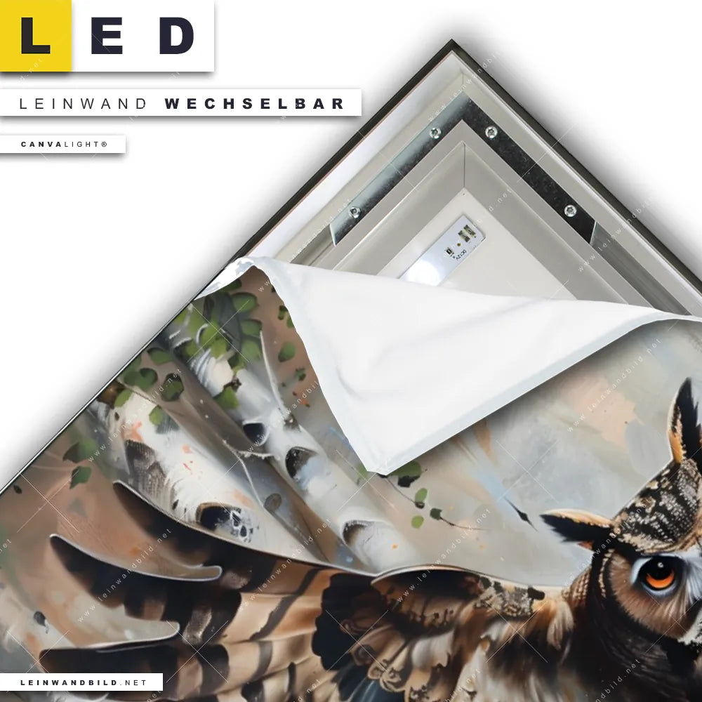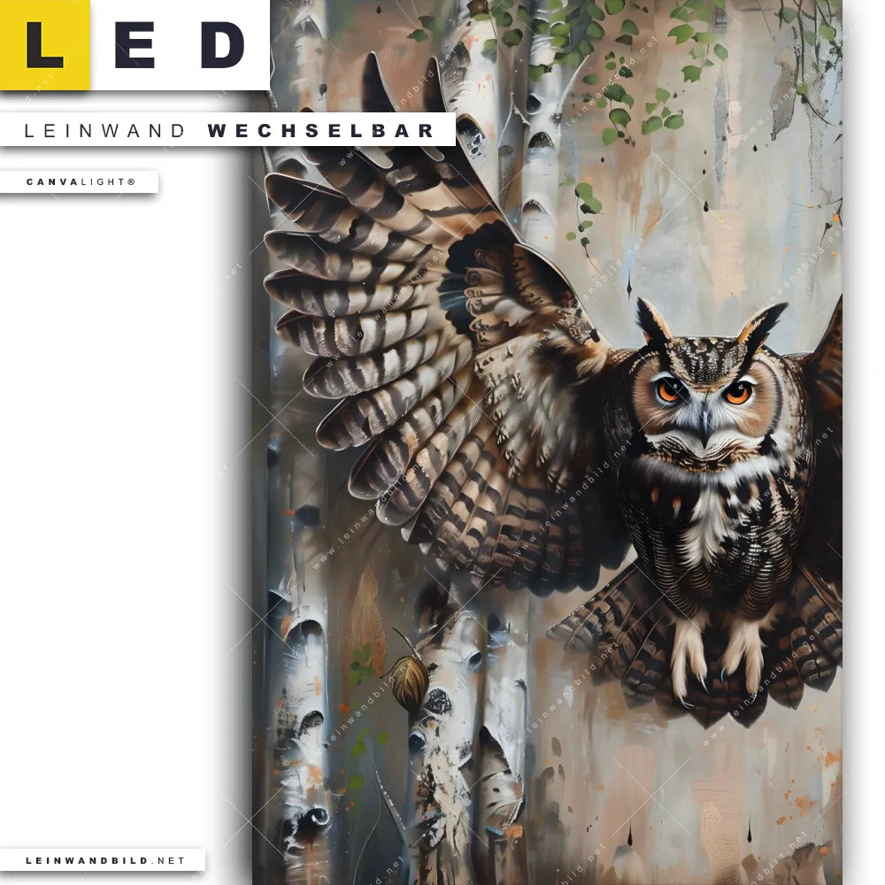 LED Leinwandbild Canvalight® TEX | Eule im Birkenwald | Hochformat
