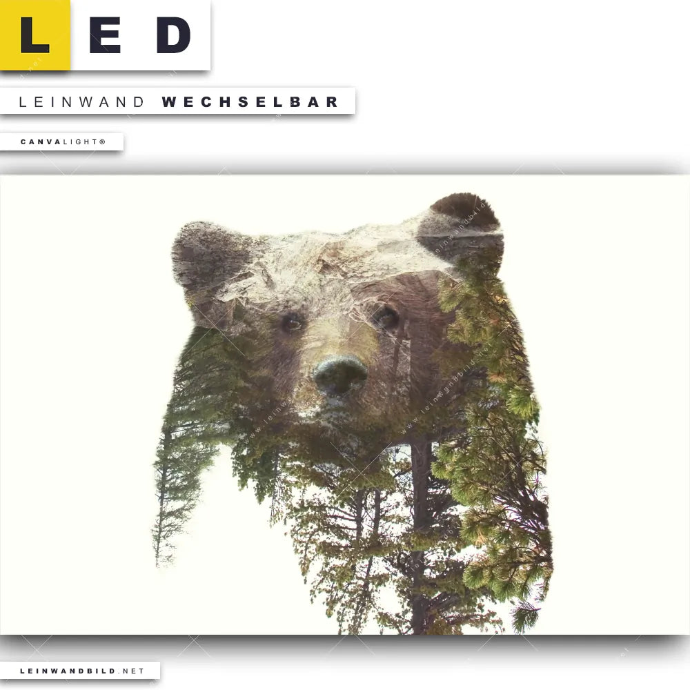 Du bist auf der Suche nach einem Tierwelt LED Leinwandbild im Querformat? Begriffe wie Bär, Wald, Doppelbelichtung, Natur, skandinavisch, Bäume haben Dich auf der Suche nach Deinem neuen XXL LED Wandbild mit wechselbarer Leinwand inspiriert? Farben wie Beige, Braun, Weiss dürfen auf Deinem neuen breiten Leinwand-LED-Bild nicht fehlen und Leuchtbilder im Mixed Media, Modern Art Stil passen perfekt zu Deinem Einrichtungsstil?