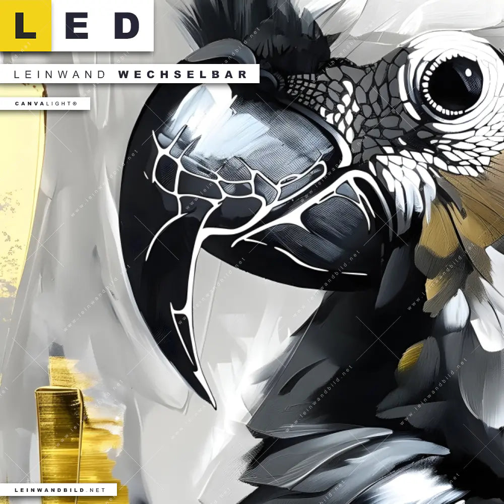 LED Leinwandbild Canvalight® TEX | Abstrakter Papagei mit Gold | Schmal